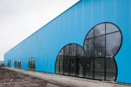 De realisatie van Arroyo’s wilde plannen stelde aannemer CEI De Meyer voor een fameuze uitdaging. “Al was het er wel eentje waar ik meteen wild van was,” zegt projectleider Dieter Dobbelaere. “Aangezien we in een bestaande hal moesten werken, was het allereerst de vraag hoe we de problematiek van de beperkte toegankelijkheid en het verticale transport zouden aanpakken. Uiteindelijk hebben we gewerkt met vorkheftrucks. Voorts was het vooral de plaatsing van de bubbels die zeer delicaat was. Ze bestaan namelijk uit glasvezelgewapende gipsschelpen van vijf à zeven millimeter dik die ter plaatse vervaardigd en gedroogd werden. We hebben ze uiteindelijk op hun plaats gekregen door ze op te hangen aan de staalstructuur. Tot slot was er dan ook nog de kunstzon met twintig powerleds die door de wind worden aangedreven. Er kwam met andere woorden ook van onze kant wel wat knowhow en creativiteit bij kijken.”