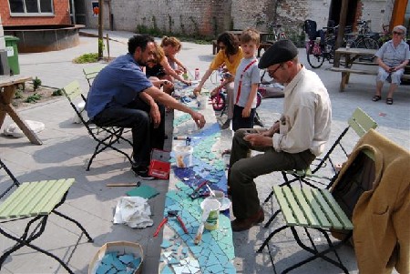 Het park doet dienst als een soort binnentuin voor de omliggende wijkorganisaties. Aan de ene zijde bestaat het uit een grasveld met bomen. Uiteraard is er een belangrijke rol weggelegd voor het groen, maar er is meer: men heeft er ook een houten podium geïnstalleerd dat van nut kan zijn bij de organisatie van zomerse buurtactiviteiten allerhande, bijvoorbeeld openluchtcinema. Aan de andere zijde is er een ruim terras met pergola voor de horeca voorzien. De verschillende gebouwen worden met elkaar en met het hoofdpad verbonden door middel van kleurrijke mozaïekweggetjes. De beplanting kreeg een zuiders tintje en is tevens eetbaar.