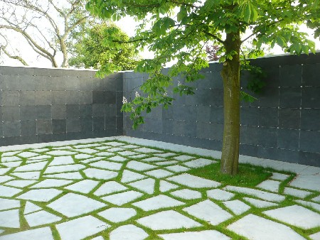 Uiteraard heeft men ook rekening gehouden met de technieken van duurzaam bouwen. Het regenwater wordt zoveel mogelijk opgeslagen en hergebruikt. Dat gebeurt onder andere door het gebruik van breukstenen met grasvoegen waar het water vlot door kan sijpelen.