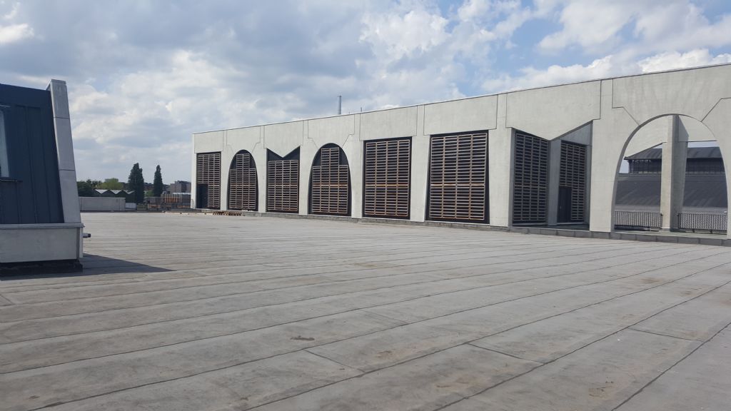 Een zeer specifieke werkmethode diende daarom samen met de technische diensten van Derbigum uitgewerkt te worden. Zo werd er op het bestaande dak een nieuwe onderlaag Derbicoat® HP geplaatst en een waterdichting Derbigum® GC 4 mm. Hierop werd vervolgens een nieuwe betonlaag gestort om de serre op te bouwen. Een techniek die enkel kan toegepast worden met de Derbigum GC-dakbanen die hiervoor speciaal ontwikkeld werden en een grotere weerstand hebben dan normale dakbanen.