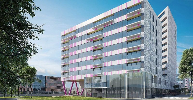 Het Stratos gedeelte van het project is een gebouw van 12 verdiepingen hoog dat 292 studentenkamers bevat. De constructie is gebouwd voor projectontwikkelaar CIP en zal worden uitgebaat door de KULeuven. De studentenkamers zijn zo goed als afgewerkt en zijn zelfs al geschilderd. Enkel het interieur ontbreekt nog.