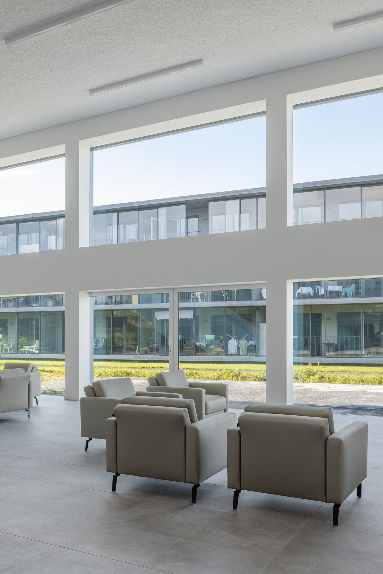 Recent namen 30 bewoners van PVT Schorshaegen in Heist-op-den-Berg hun intrek in een compact, maar elegant nieuw gebouw, ontworpen door het Rotterdamse Atelier Kempe Thill in samenwerking met Daniel Van Doorslaer. Op de bovenste twee verdiepingen bevinden zich de kamers met veel glaspartijen. Het gelijkvloers biedt plaats aan een grote ontspannings- en ontmoetingsruimte waar het licht binnen stroomt. Verder is er plaats voor logistieke diensten en zorgfuncties. De opdrachtgever en de architecten hebben ernaar gestreefd om de bewoners zoveel mogelijk autonomie te geven.