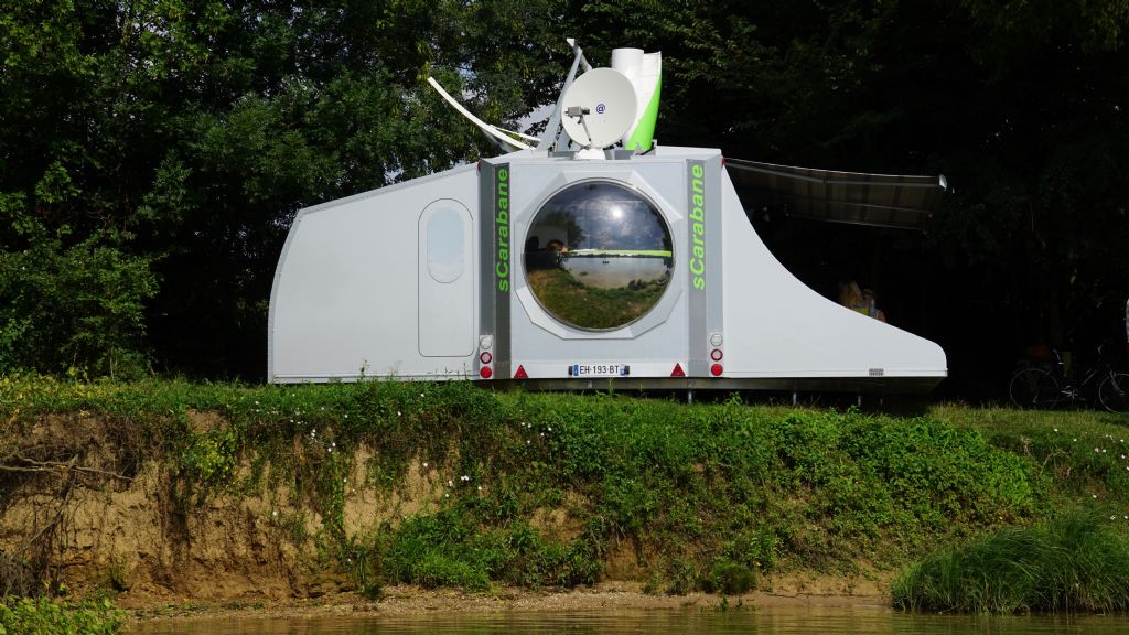 De sCarabane van Green Cat Technologies oogt met zijn rechthoekige vorm op het eerste zicht als een normale caravan. Niets is minder waar. Het beestje ontpopt zich tot een miniwoning, die zelf elektriciteit en warm water produceert met behulp van hernieuwbare energie.