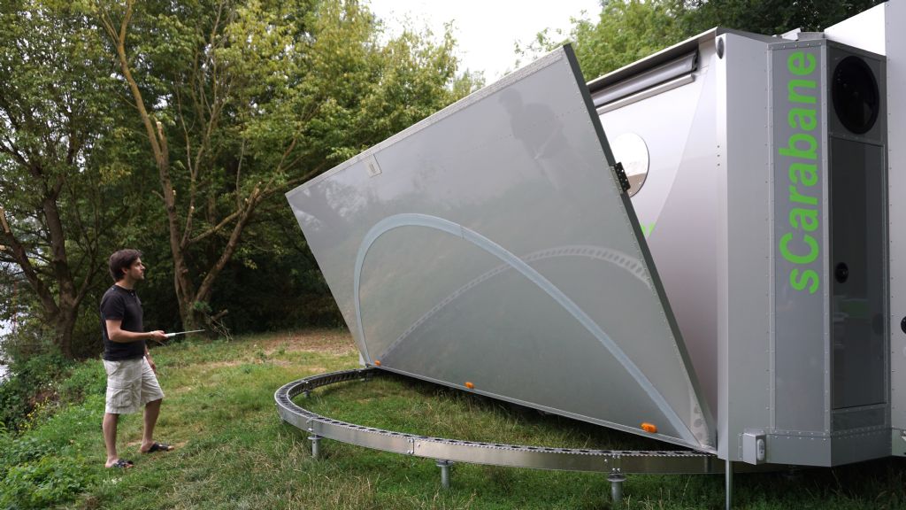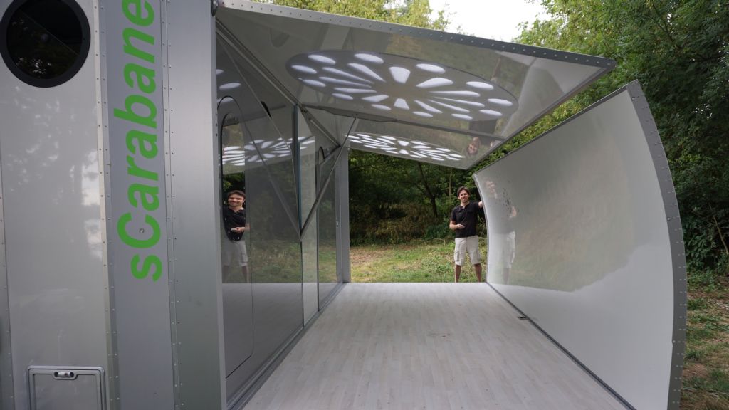 Met de sCarabane wil het Franse bedrijf Green Cat Technologies glamping naar een hoger niveau tillen. De caravan ontplooit zich tot een soort van miniwoning voor zes personen. Zo biedt het lange dek genoeg ruimte voor een lounge, de uitklapbare bar en tafels en stoelen om te dineren. Verder is de caravan voorzien van alles wat je verwacht van een woning: een badkamer, een living, een keuken met alle toestellen en drie slaapkamers.