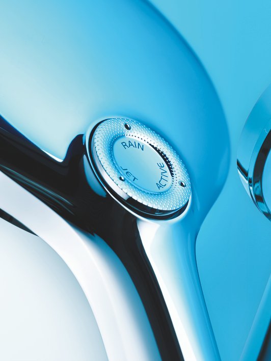 In het midden van de handdouche creëren ovale en stervormige sproeiers de krachtige ActiveMassage- straal. Acht andere openingen creëren een zeer krachtige straal, die direct na een training verkwikkend kan aanvoelen. Ook het uitspoelen van shampoo is een koud kunstje met deze straalsoort. Als de voorkeur uitgaat naar een meer gematigde straal, bieden de sproeiers rond de basis een zachte, volledige Rain-straal.
