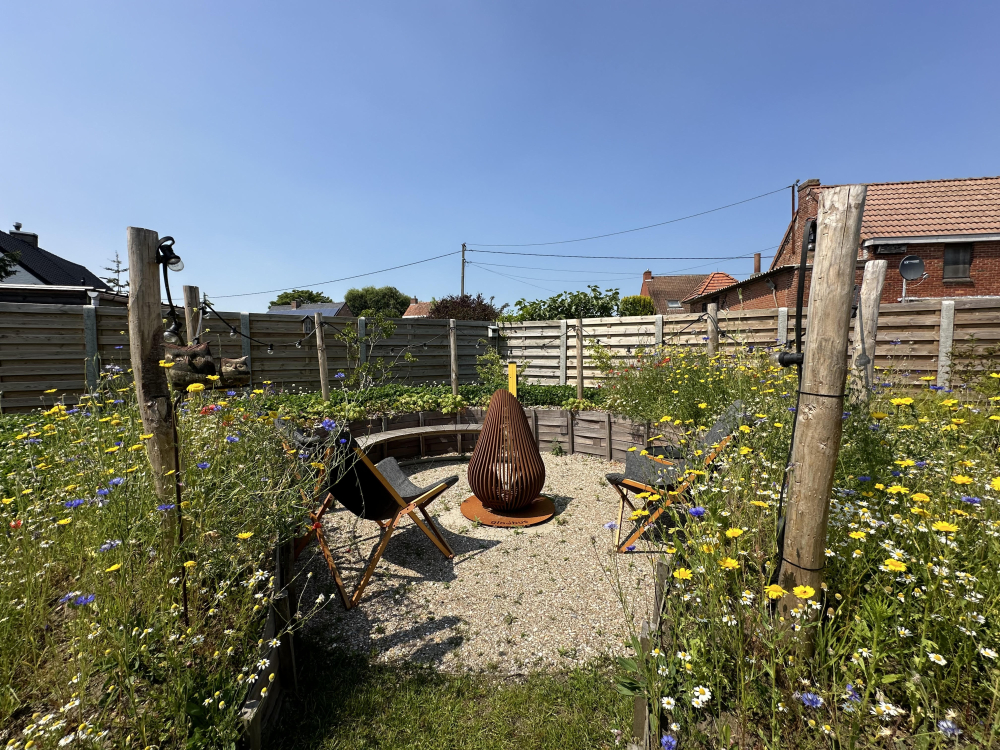 Ook nog het vermelden waard is dat Dirk en Sally douchen met gefilterd regenwater en in de tuin, ontworpen door Nikè Verfaille van NATUURSTUDIO, enkel inheemse planten staan die, omdat ze afgestemd zijn op het type grond, bodemverbetering ook op lange termijn overbodig maken.