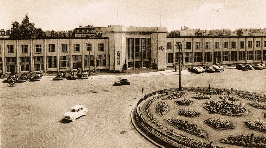 Architect Pierre Albert Pauwels realiseerde het station van Kortrijk vlak na de zware bombardementen op de stad in de Tweede Wereldoorlog. Het gebouw is het symbool van de wederopbouw van Kortrijk. Na de recente sloop van het station van Mechelen is dit het laatste grote wederopbouwstation in Vlaanderen.