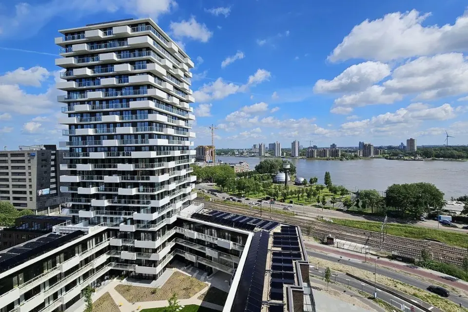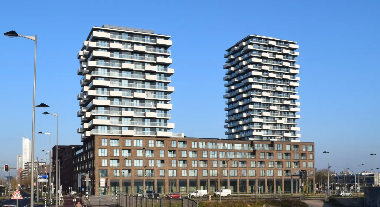 De keuze voor Metropolis Black (L9000) Specular finish resulteert in een opvallende hoogglansafwerking die de stad weerspiegelt, de sculpturale vormen van de torens benadrukt en het project een unieke identiteit geeft binnen de skyline van Rotterdam.