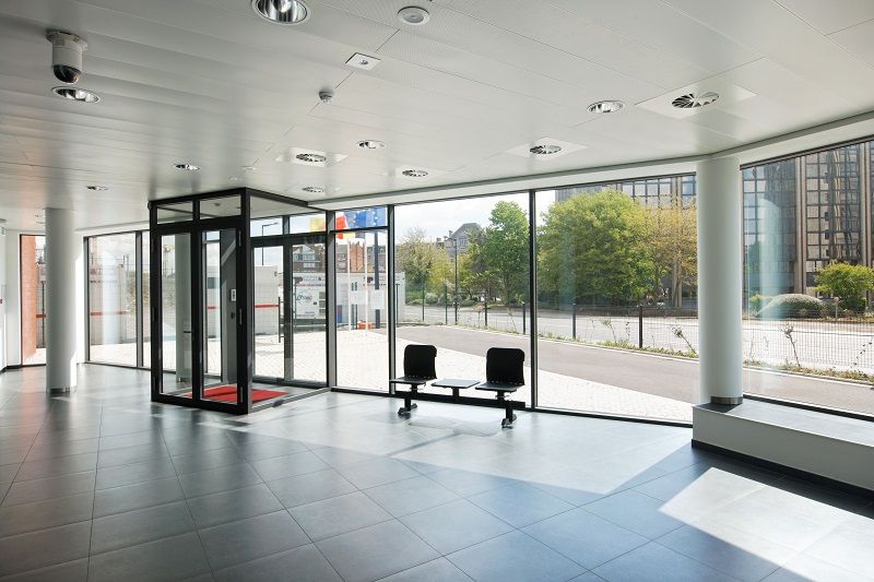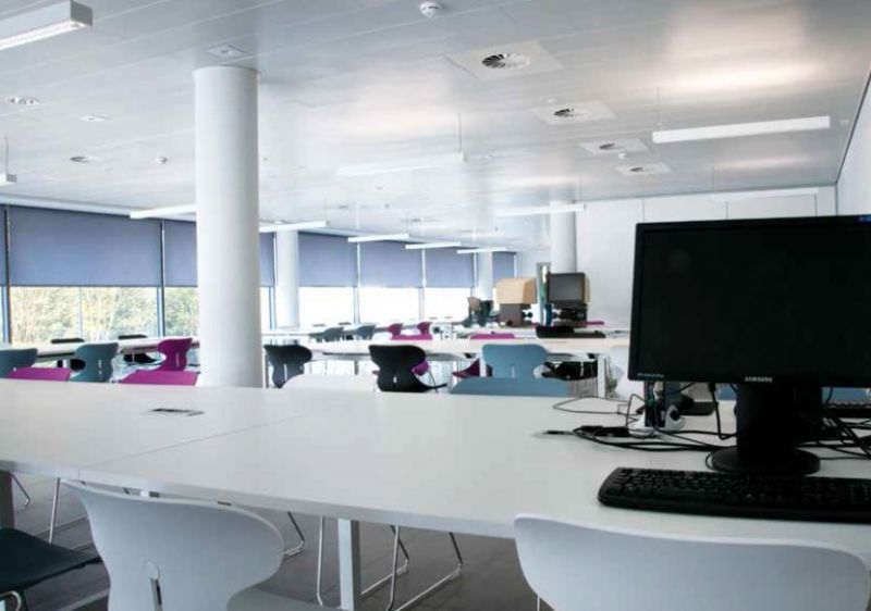 De derde zone is een kantoorzone. Deze ligt aan het uiteinde van het gebouw en faciliteert zo de toegangscontrole. De grote ruimtes bevinden zich op de hoogste verdieping. Talrijke vensteropeningen dragen bij tot de luchtige sfeer van het geheel.