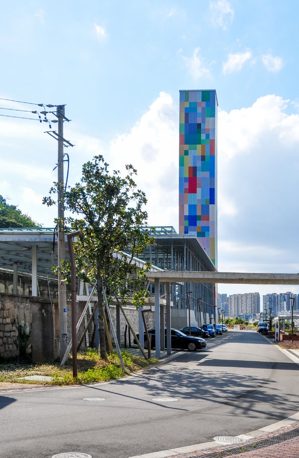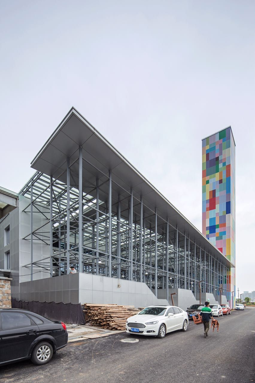 De Chinese architect Wang Shu kreeg van de lokale overheid van Zhoushan (een archipel in het oosten van China) het mandaat om het haven- en industriegebied van het eiland Lujiazhi om te vormen tot een culturele en toeristische trekpleister, die omgedoopt werd tot Lujiazhi Cultural Creativity Garden. Shu betrok architectenbureau Philippe SAMYN and PARTNERS bij deze uitdagende opdracht, onder meer voor de realisatie van dit cultuurcafé met parkeertoren.