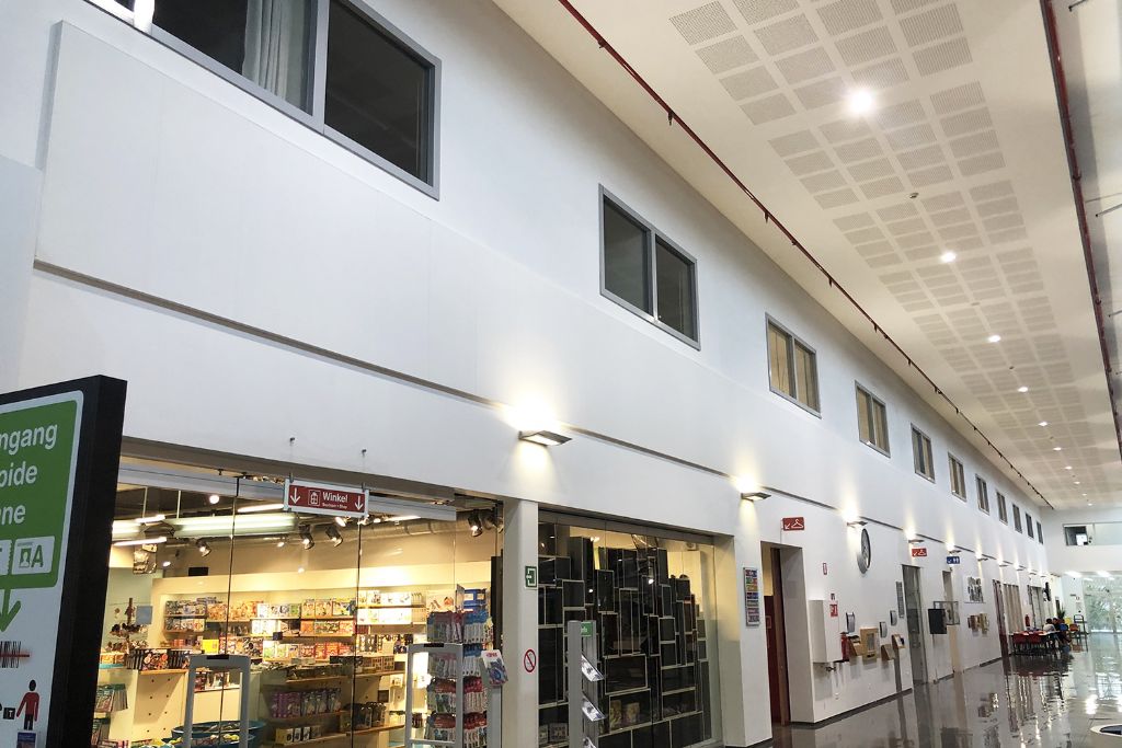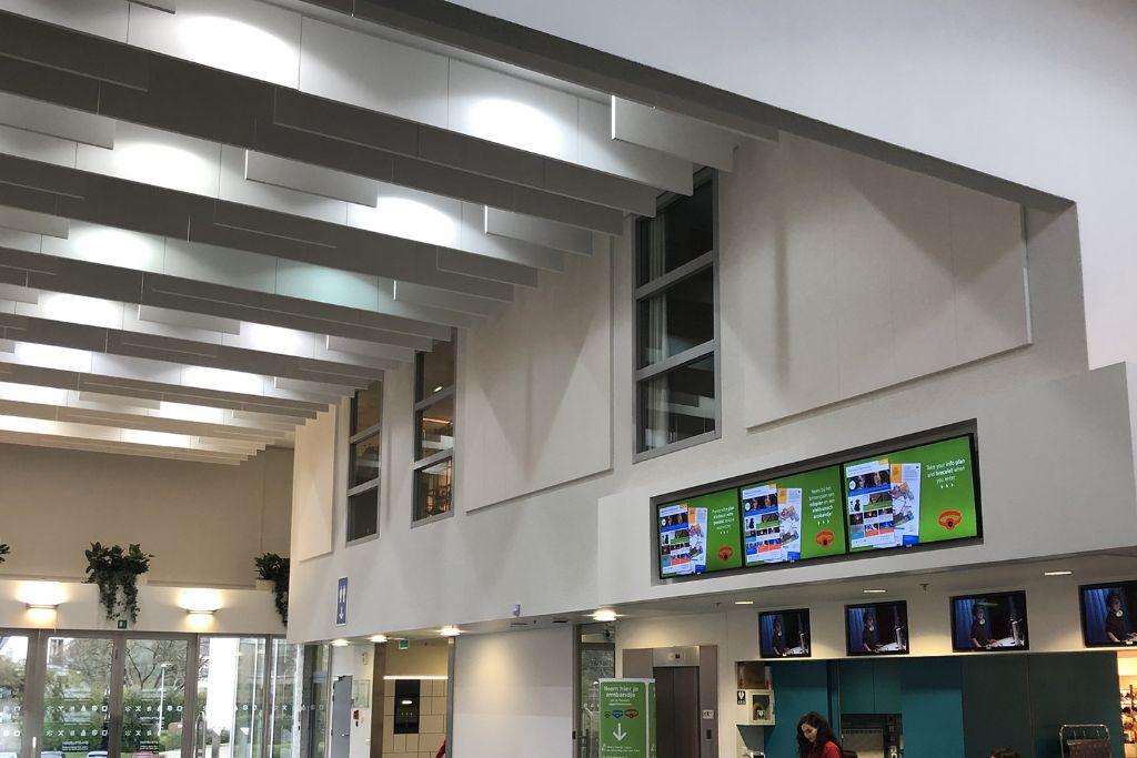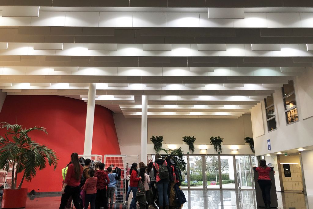 In opdracht van Technopolis optimaliseerde Renobo de akoestiek in de inkomhal en aansluitende gangen. Daarvoor plaatsten ze akoestische baffles en wandpanelen aan het plafond en aan de wanden.