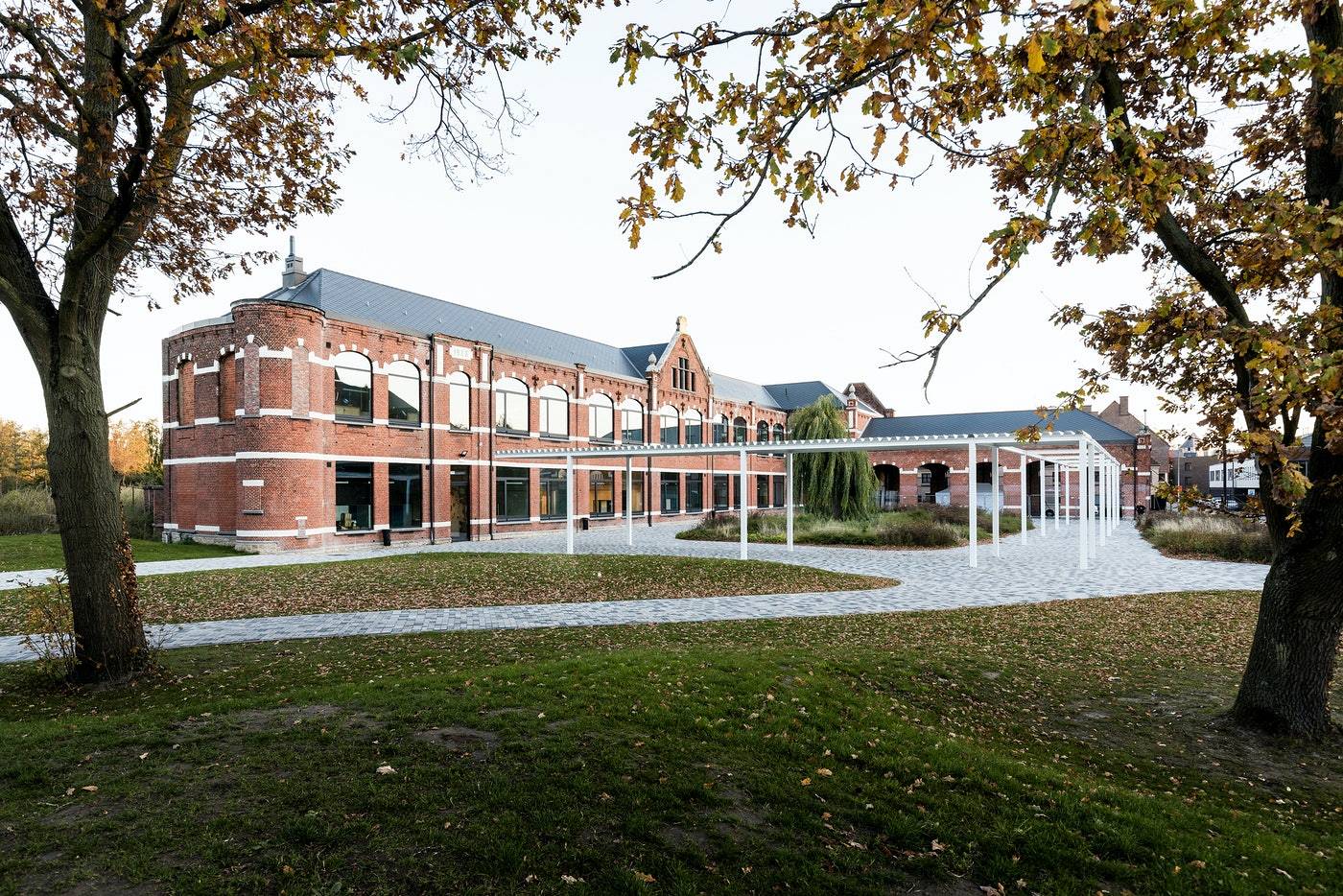 Renovatie erfgoed en nieuwbouw van een technische scholencampus met sportinfrastructuur