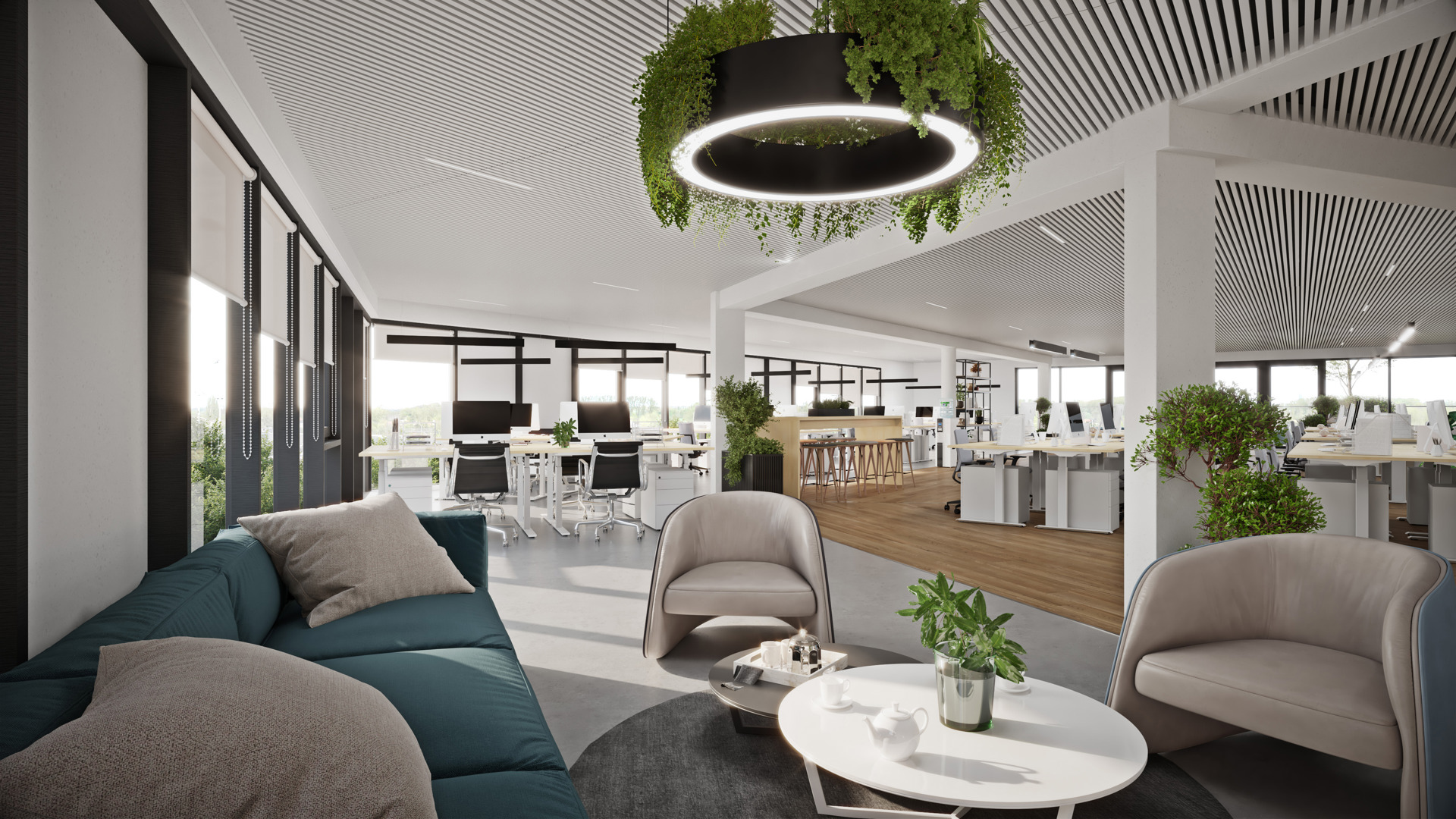 De kantoorplateau’s en technieken zijn volledig modulair opgevat en opgedeeld in verschillende zones. Buitenterrassen aan de beschutte zijde, een kwalitatieve binnentuin en een ruime parkeercapaciteit, inclusief laadpalen en zonnepanelen, verhogen het comfort en de toekomstbestendigheid van het gebouw.