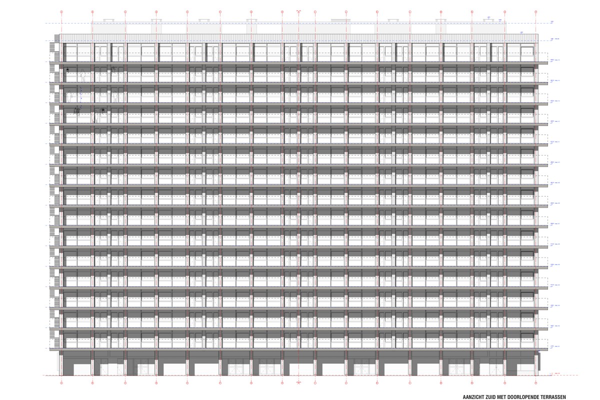 Aansluitend op het eerder goedgekeurde renovatiemasterplan werd Gevelinzicht aangesteld voor de terras- en gevelrenovatie van drie gevels, met Bollinger+Grohmann als structureel adviseur. De bestaande terrassen werden vervangen en uitgebreid, wat de bruikbaarheid en de leefkwaliteit van de appartementen aanzienlijk verhoogde. Daarnaast werden twee nieuwe buitenvluchttrappen toegevoegd, die zorgen voor een duidelijke verbetering van de brandevacuatie.