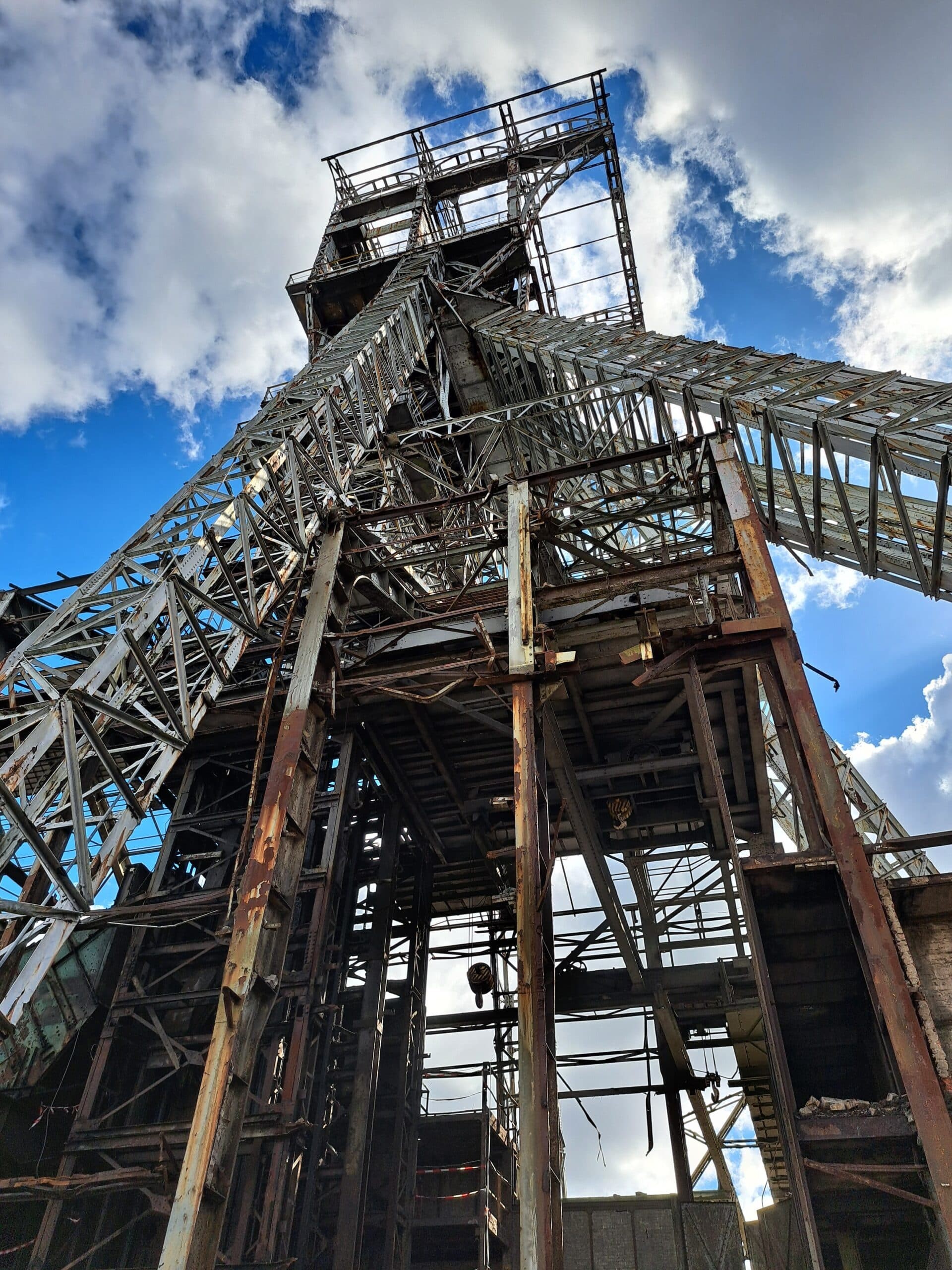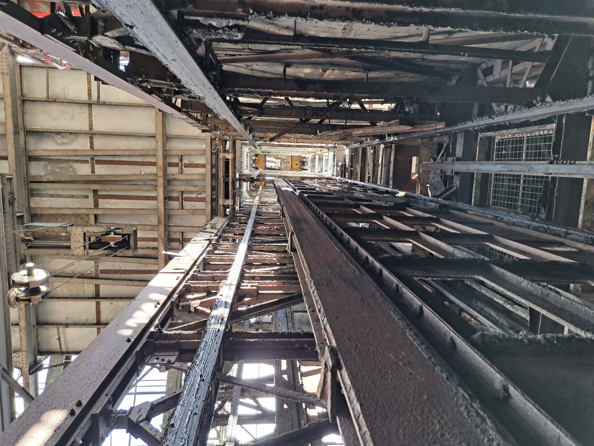 Bij een project als dit zijn bouwkundige verrassingen onderweg nooit uitgesloten. “Om de invulling van de werken zo precies mogelijk in te schatten, was een gedetailleerde opmeting een must”, legt Baelus uit. “Maar dat bleek allesbehalve eenvoudig. Het ontvangstgebouw lag er bijzonder bouwvallig bij. Stof, puin, corrosie, noem maar op. En ook de schachtbok opmeten, bleek geen sinecure. We zijn letterlijk in de torenconstructie gekropen om iedere stalen balk tot op de millimeter in kaart te brengen.”