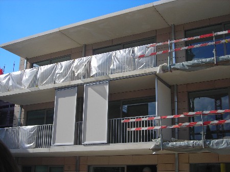 De lijnelementen en schuifpanelen worden functioneel gecombineerd waardoor er een perfecte privacy wordt gegarandeerd naar de bewoners. Bovendien ontstaat op die manier een dialoog tussen introvert en extravert. De strengheid van de massieve volumes moet volgens de architecten voldoende geanimeerd worden door de schuifpanelen welke ervoor zorgen dat de gevel geen statisch uitzicht in de stad heeft maar veeleer een dynamisch karakter krijgt.