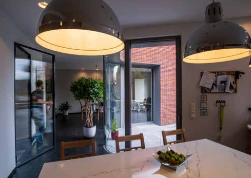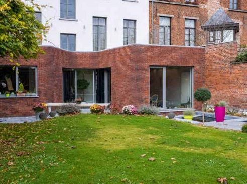 Een rijwoning in Zinnik werd door TAAC uitgebreid met een moderne aanbouw in karakteristieke gevelstenen. Dankzij de nieuwe indeling en het groene platdak krijgt de woning opnieuw natuurlijk licht en een sterke connectie met de tuin. De uitbreiding van deze woning in het centrum van Zinnik had als doel meer natuurlijk licht binnen te laten, de relatie met de tuin te versterken en de keuken te vergroten om deze eengezinswoning comfortabeler te maken.