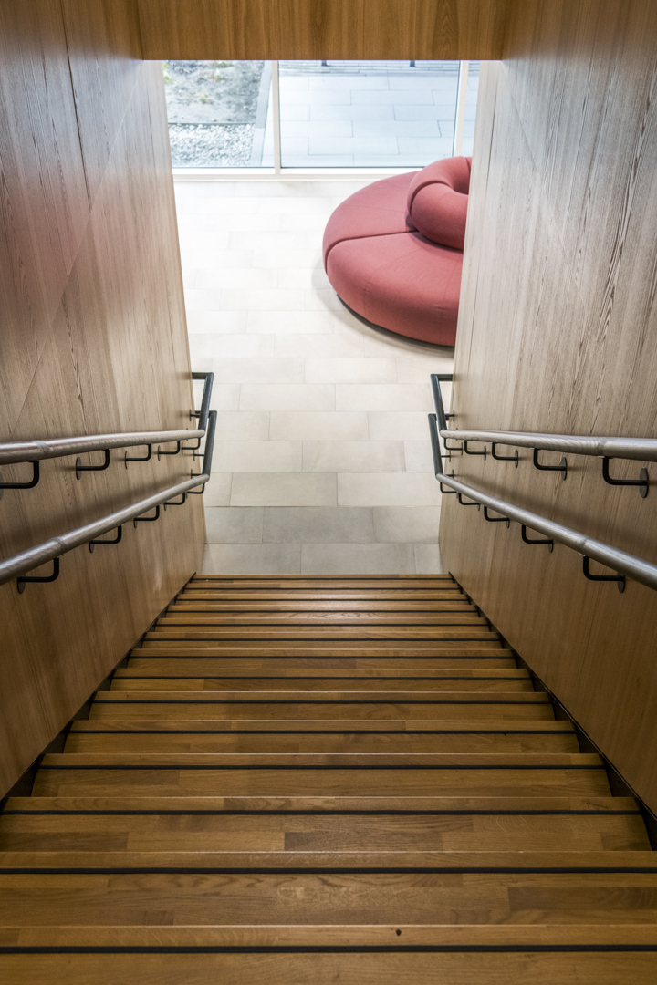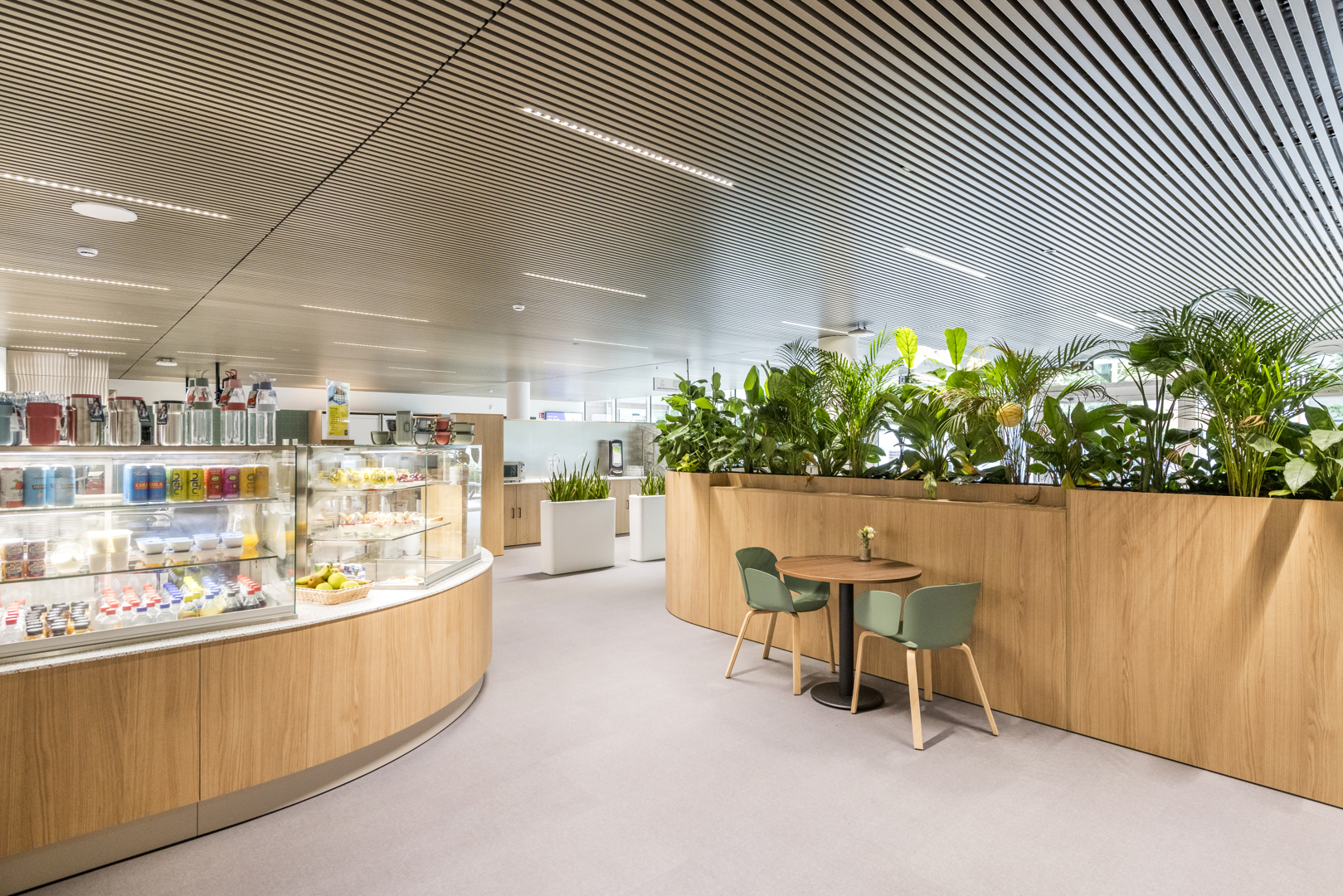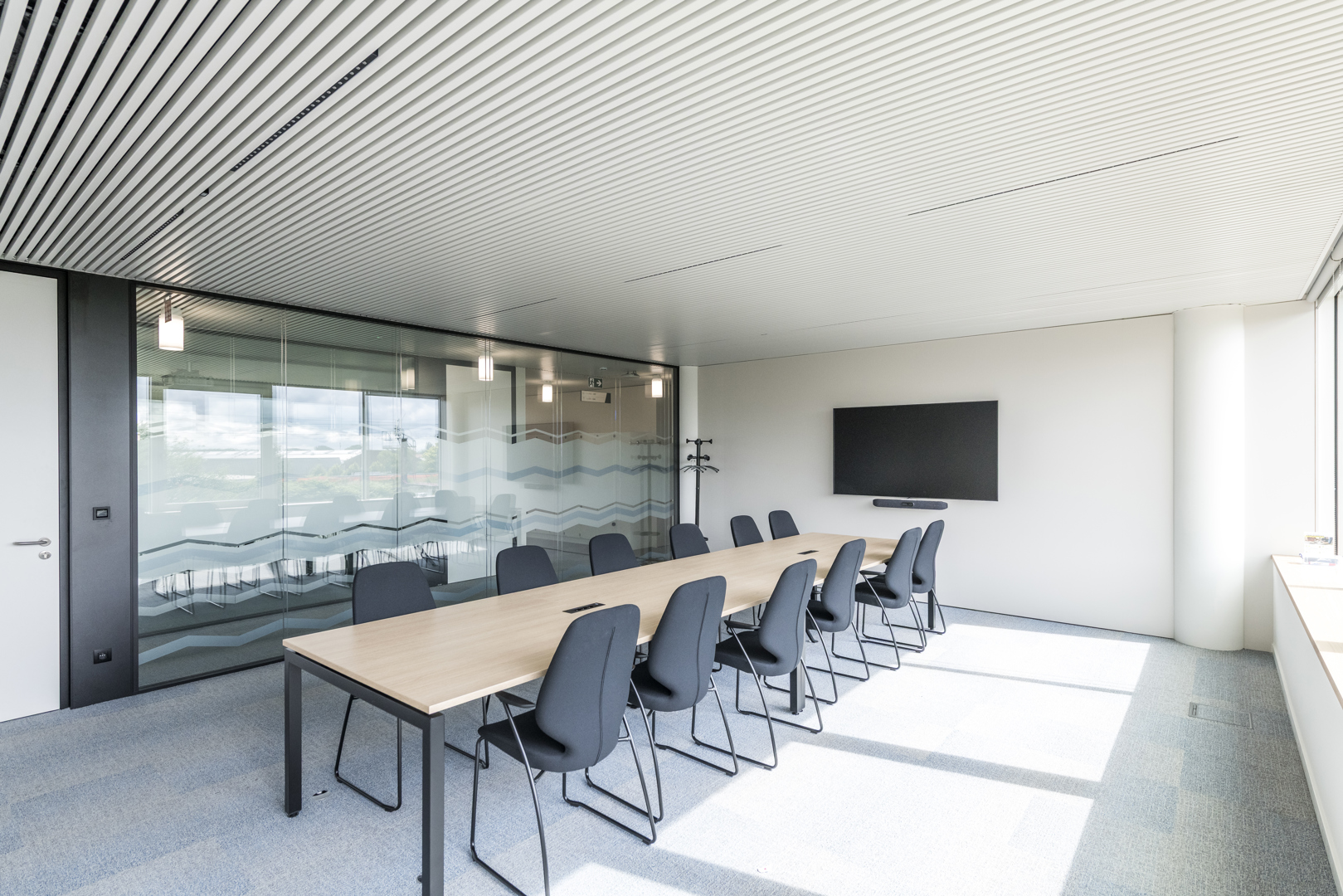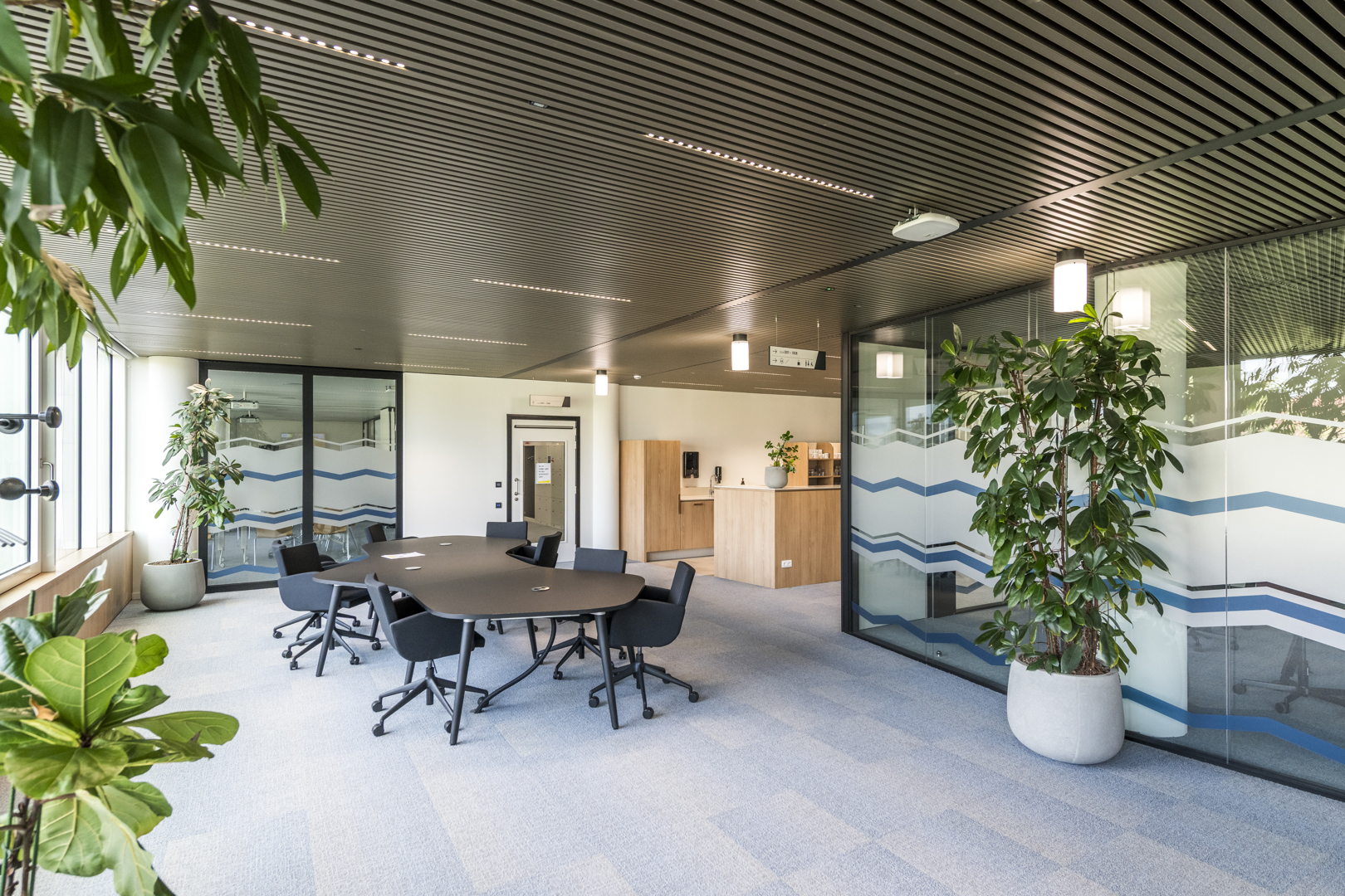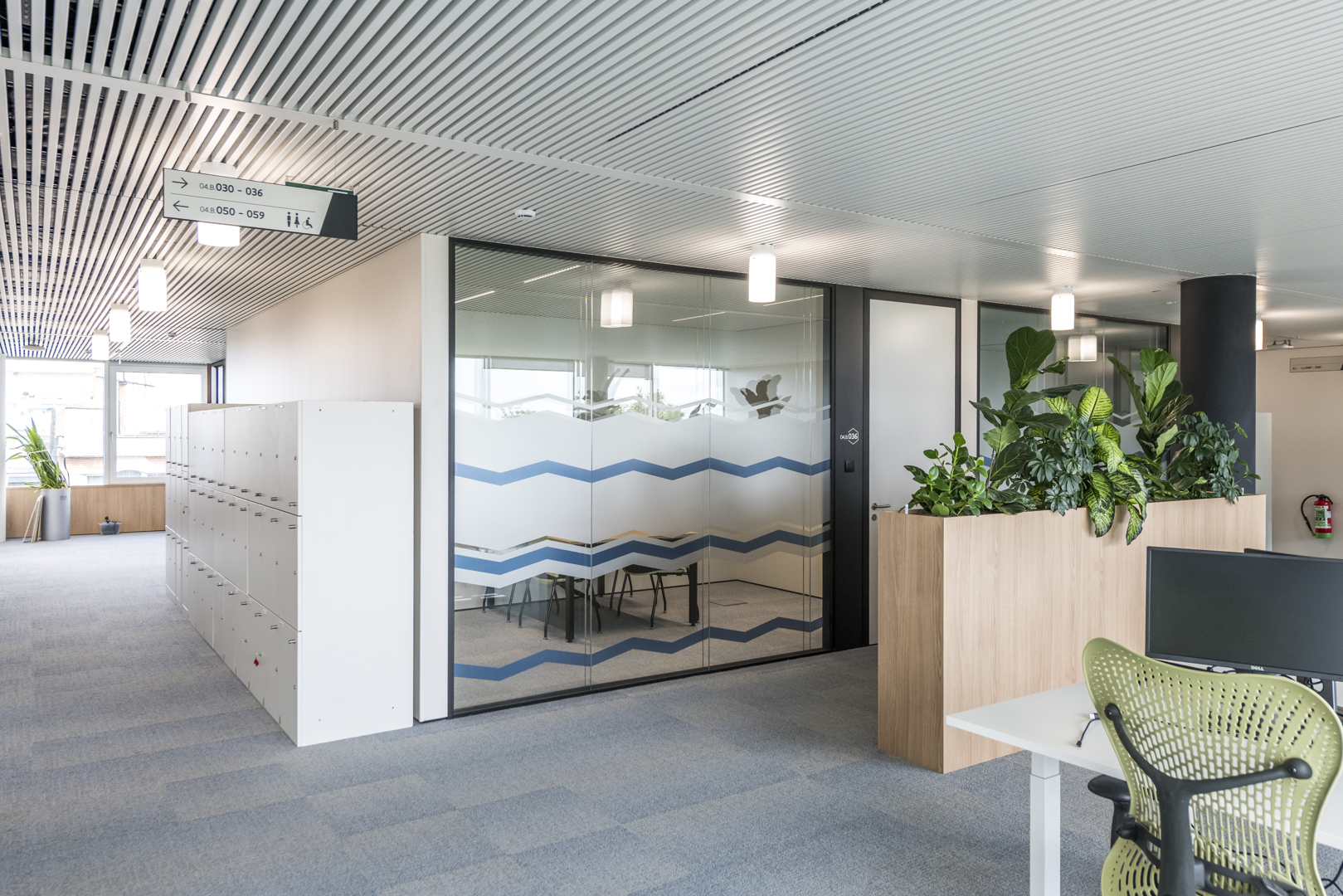De nieuwe kantoorinrichting werd gebaseerd op het principe van hybride werken: de verschillende verdiepingen zijn opgedeeld in zones exclusief voor de verschillende entiteiten en in diverse gedeelde zones, beschikbaar voor iedereen die in het gebouw werkzaam is.