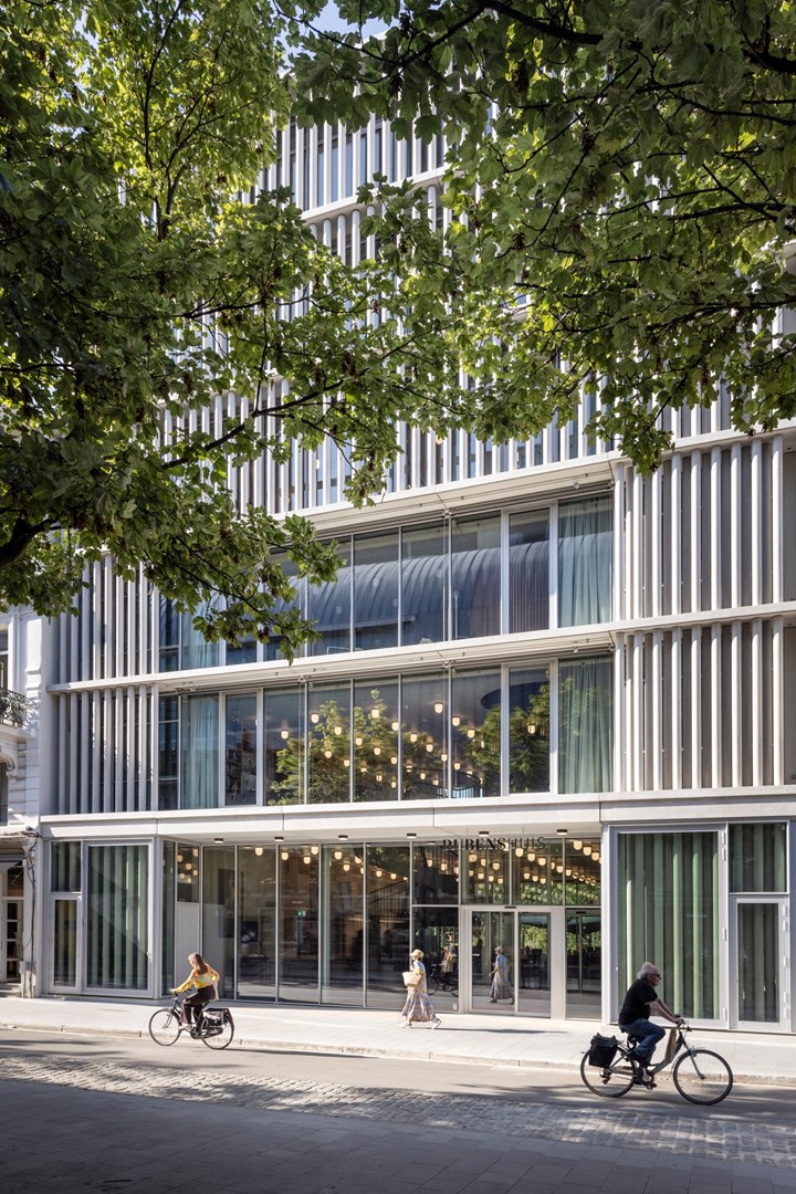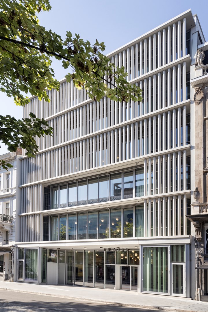 Rubens was zelf niet vies van een gewaagde mix van bouwstijlen. Zijn eigen huis is een combinatie van een renaissancewoning met een barokatelier en een tuin met portiek en paviljoen. Voor de nieuwe toegang van het Rubenshuis, op Hopland 13, kozen Robbrecht en Daem architecten bewust voor een hedendaagse uitstraling, passend bij Rubens’ eclectische smaak. Het moderne volume staat wat zijdelings van het historische gedeelte. Door het gebouw buiten de perspectieflijnen te plaatsen, blijft het uitzicht op de portiek en de tuin vanuit de kunstenaarswoning behouden en hun verbindende functie overeind.
