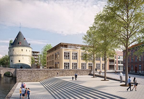 Gezien de gevoelige ligging naast de Broeltorens – hét symbool van Kortrijk – en het aanwezige erfgoed op de site zelf, lijkt de keuze voor Lens°ass een logische keuze. Het bureau heeft een ruime ervaring in het ontwerpen van “nieuw naast oud” en het inzetten van waardevol erfgoed in een herbestemd kader. Na de wedstrijd was er nog twee jaar nodig om in overleg met alle betrokken partijen de wensen en voorschriften op elkaar af te stemmen. Het uiteindelijke ontwerpvoorstel ontstond in samenwerking met erfgoedexpert Johan Grootaers en de landschapsarchitecten van Buro Groen.