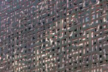 De inkom van het gebouw wordt aan straatzijde gemarkeerd door een kunstwerk van 4 op 9 meter in geperforeerd, bronskleurig aluminium, ontworpen door Jeanine Cohen. Het werk bestaat uit verschillende lagen met verschillende kleuren. Zonlicht zorgt voor reflecties van een verborgen kleurvlak, waardoor het via de perforaties en naargelang het uur van de dag meer of minder intense kleurvariaties uitstraalt.