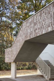 HASA-architecten heeft een internaat voor kinderen en jongeren met een verstandelijke beperking ontworpen op de groene campus Kristus Koning in Brecht. “Ons streefdoel was de bewoners een geborgen, rustige omgeving te bieden waar ze zich thuis voelen. Verder wilden we zo weinig mogelijk plek in het bos innemen”, aldus Sarah Flebus, mede-oprichter van HASA-architecten.