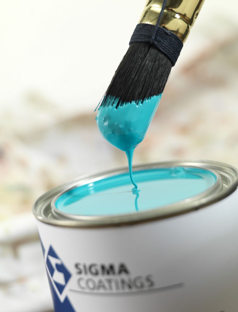 De afwerking van zowel de binnen- als de buitenmuren bestond uit verfsystemen van Sigma. De muren in de woonkamer kregen een laag Sigmacryl Ecoplus Matt, een matte muur- en plafondverf gecertificeerd met het Europese EcoLabel, de andere ruimtes werden afgewerkt met Sigmapearl Clean Matt, een makkelijk reinigbare verf met water- en vetafstotende eigenschappen. Op de buitengevel brachten de vakmannen eerst een laag Siloxan Fillprimer aan met daarbovenop een laag Siloxan Topcoat Matt. Deze buitenverf is sterk waterdampdoorlatend en tegelijk slagregendicht en vuilafstotend. Bovendien fungeert deze verf ook als extra thermische isolatie. De houten elementen werden ten slotte afgewerkt met Sigmalife VS TX en Sigmalife DS TX Satin, een uv-bestendige thixotrope beitssysteembehandeling met zijdeglans.