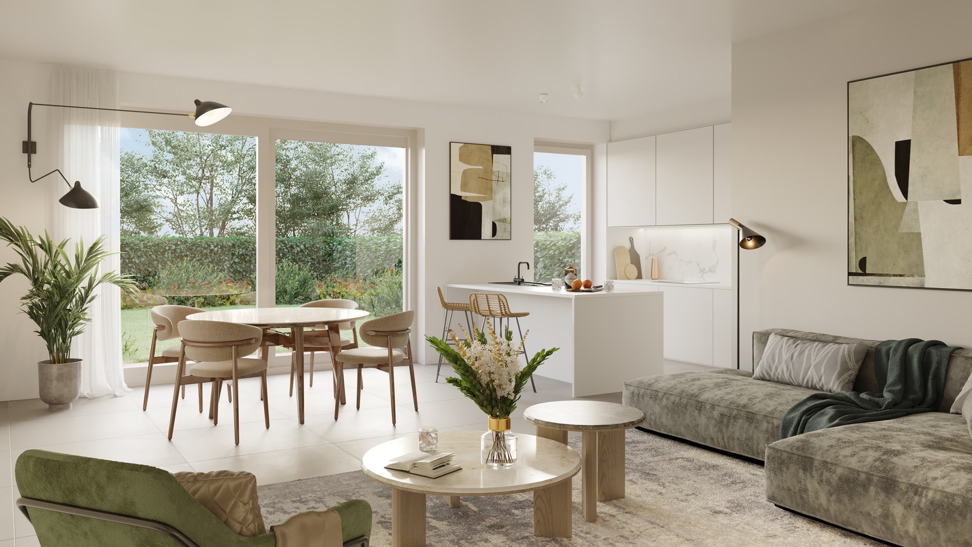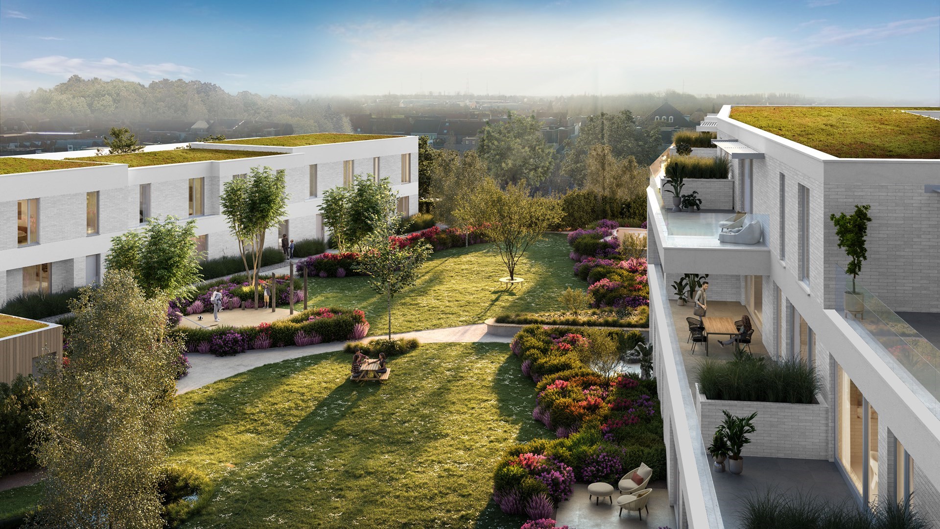 Het nieuwe woonproject speelt enerzijds in op het compact bouwen centraal binnen een gemeente, maar zorgt anderzijds voor een maximale ontharding van het perceel waar plaats wordt gemaakt voor groen en ontmoeting. De centrale groene omgeving zal opgeladen worden met speel- en tuinmeubilair om het vertoeven te maximaliseren.