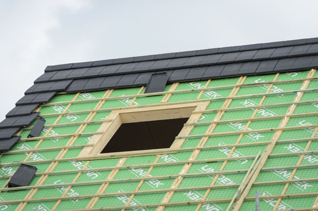 Gilen Woonprojecten werkt voor de afwerking van de daken met één dakdekker. Omdat de dakelementen, bestaande uit een vormvaste EPS-kern, zelfdragend zijn, kan de dakdekker een volledig dak met 2 personen op 2 dagen dicht leggen, inclusief panlatten en dakafwerking. Daarvoor zijn op de werf slechts twee man nodig, die alle handelingen kunnen uitvoeren, zonder dat je extra zware machines nodig hebt.