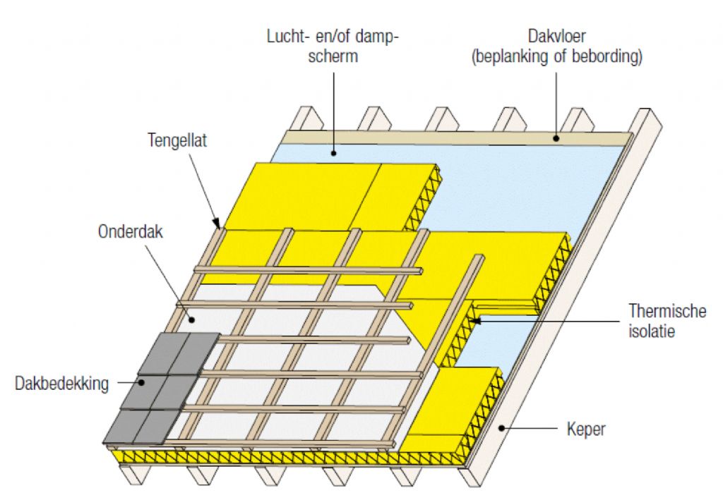 De uitvoering van een dergelijk systeem vergt evenwel enkele maatregelen, zoals een minimale breedte van de kepers of de spantbenen om een goede bevestiging van de tengellatten mogelijk te maken. De TV 251 gaat hier dieper op in en vermeldt de grootteorden voor de dikte van de isolatie in functie van de soort isolatie en het gewenste isolatieniveau.