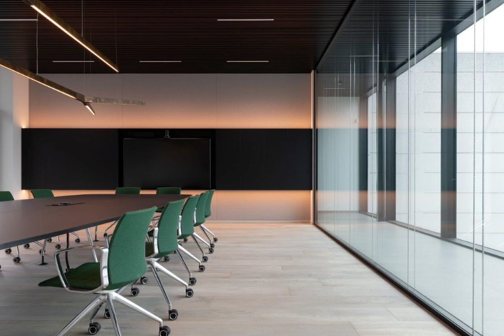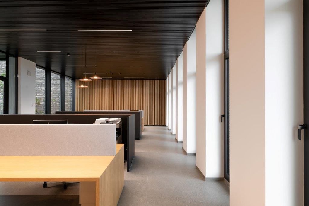 De open, hoge ruimtes in de kantoren geven de werknemers weer ruimte. Vergaderen kan in verschillende delen van het gebouw zowel op formele als informele manier. Het geheel ademt rust uit en dat biedt een aangenaam tegenwicht voor de hectiek die soms heerst in de omliggende productieomgeving.