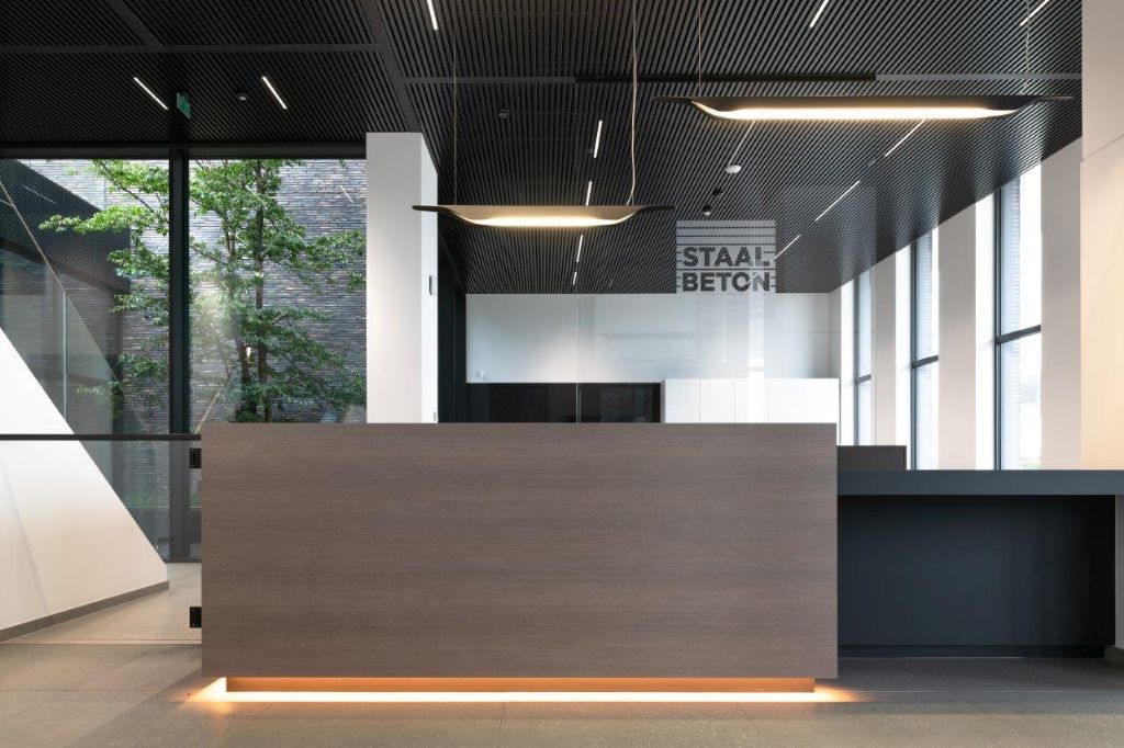 Staalbeton is een belangrijke toeleverancier in de bouw en biedt zijn klanten producten op maat dankzij de wapeningscentrale, metaalschrijnwerkerij en prefabafdeling. Dankzij het succes van het bedrijf werden de huidige kantoren te klein en drong een nieuwe locatie zich op. De kantoren zijn ingepast op de site van het bedrijf in Rijkvorsel tussen de bestaande werkplaatsen.
