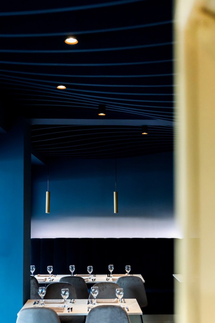 Ook het restaurant Dionysos in Genk van Architectuur Depot was heel leuk om te doen. Het plafond heeft iets idyllisch en zijn precies golven uit de zee.