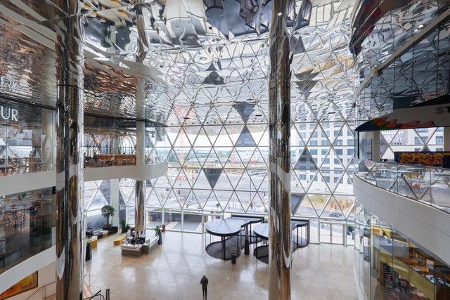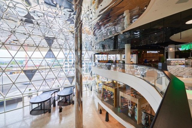 De mega shopmall Auchan Cloche d’Or is ontworpen door architectenbureau Schemel Wirtz Architectes Associés. De hoofdingang werd gerealiseerd in nauwe samenwerking tussen de fabrikant van de draaideuren Boon Edam en de fabrikant van entreematten emco.
