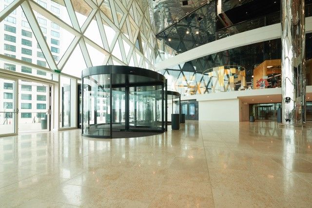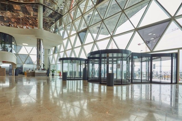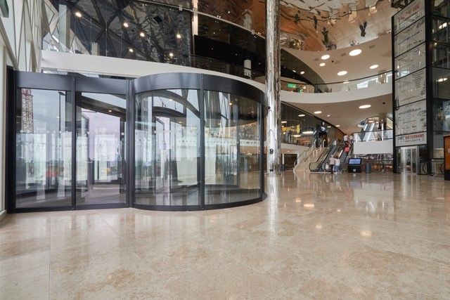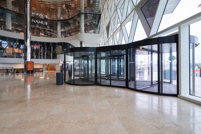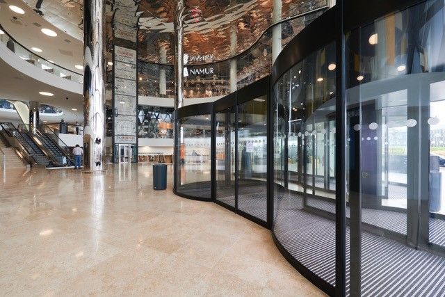 De hoofdingang van centre commercial Cloche d’Or is voorzien van twee fraaie Twintour draaideuren met emco schoonloopzones. Elke schoonloopzone heeft een lengte van zelfs 10 m. Dit zorgt niet alleen voor de hoogste opname van vuil en vocht, rolstoelgebruikers en mensen met een kinderwagen kunnen moeiteloos de dubbele draaideur passeren. De schoonloopzone voorkomt de dagelijkse verspreiding van ca. 7 kg vuil per 1.000 bezoekers! Dit verlaagt de reinigings-, onderhouds- en herstelkosten van de binnen vloeren aanzienlijk.