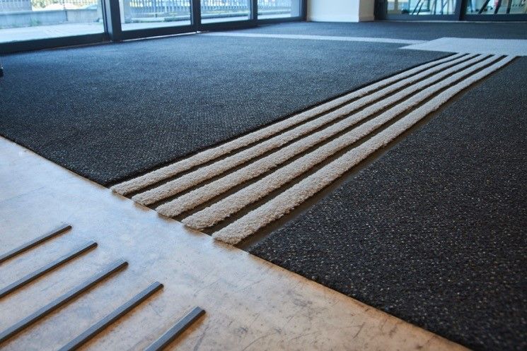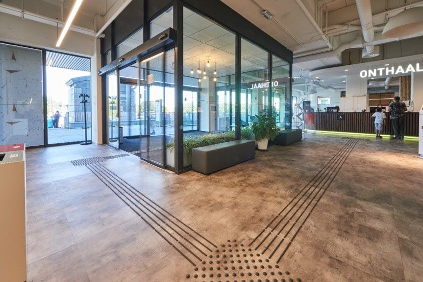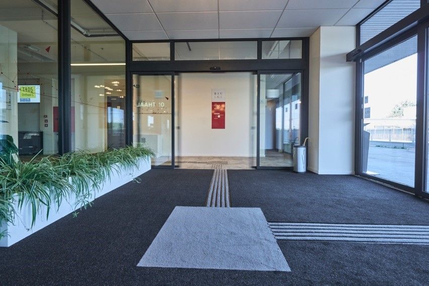 Een primeur in de Benelux met twee functies in één: een schoonloopzone in combinatie met gidssysteem, de emco MAXIMUS, geplaatst bij het Administratief Centrum te Brugge. Een perfecte oplossing voor mensen met een visuele beperking. Zij kunnen nu aan de mat voelen waar ze zijn en zich daardoor goed oriënteren. Bovendien zorgen de contrastkleuren voor een geleiding voor slechtzienden en begeleiding van mensen.
