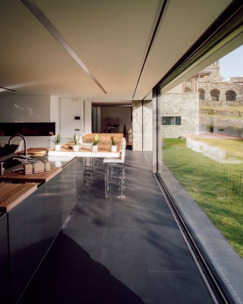 Schüco produceert zo’n schuifdeuren en heeft onlangs een nieuwe variant voorgesteld binnen zijn schuifsysteem ASS 77 PD. Het nieuwe onderdeel kan in een hoek van 90° worden ingebouwd. Daardoor kan de hoek optioneel voorzien worden van twee openschuifbare zijden die zorgen voor een enorm open gevoel. Ook de slanke raamprofielen met een aanzichtsbreedte van slechts 30mm creëren een maximum aan transparantie en lichtinval. Deze twee elementen zorgen ervoor dat de grens tussen binnen en buiten tot een minimum beperkt wordt.