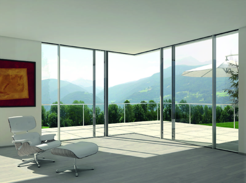 Schüco introduceert een nieuw schuifdeurensysteem dat in een hoek van 90° kan worden ingebouwd. Door de slanke aluminium profielen valt er een maximum aan licht binnen, terwijl de fabrikant tegelijk een hoge thermische isolatiewaarde nastreeft. De schuifdeuren zijn zowel handbediend als in een elektrische variant beschikbaar.