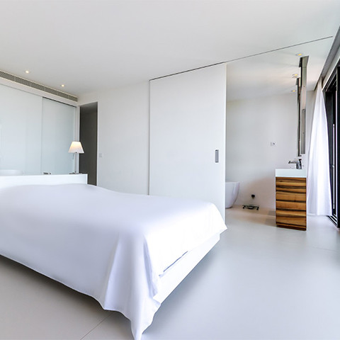 Het minimalistische design van kamerhoge schuifdeuren, mede mogelijk gemaakt door het inbouwprofiel, laat houten schuifwanden of glazen deuren opgaan in het plafond en/of in de muur. Dit systeem biedt met andere woorden niet enkel alle functionaliteiten van een schuifdeur, het kan ook dienst doen als mobiele wand. Dat opent perspectieven in ontwerp en laat je de vrijheid om volledig out of the box te denken bij het invullen van grotere ruimtes.