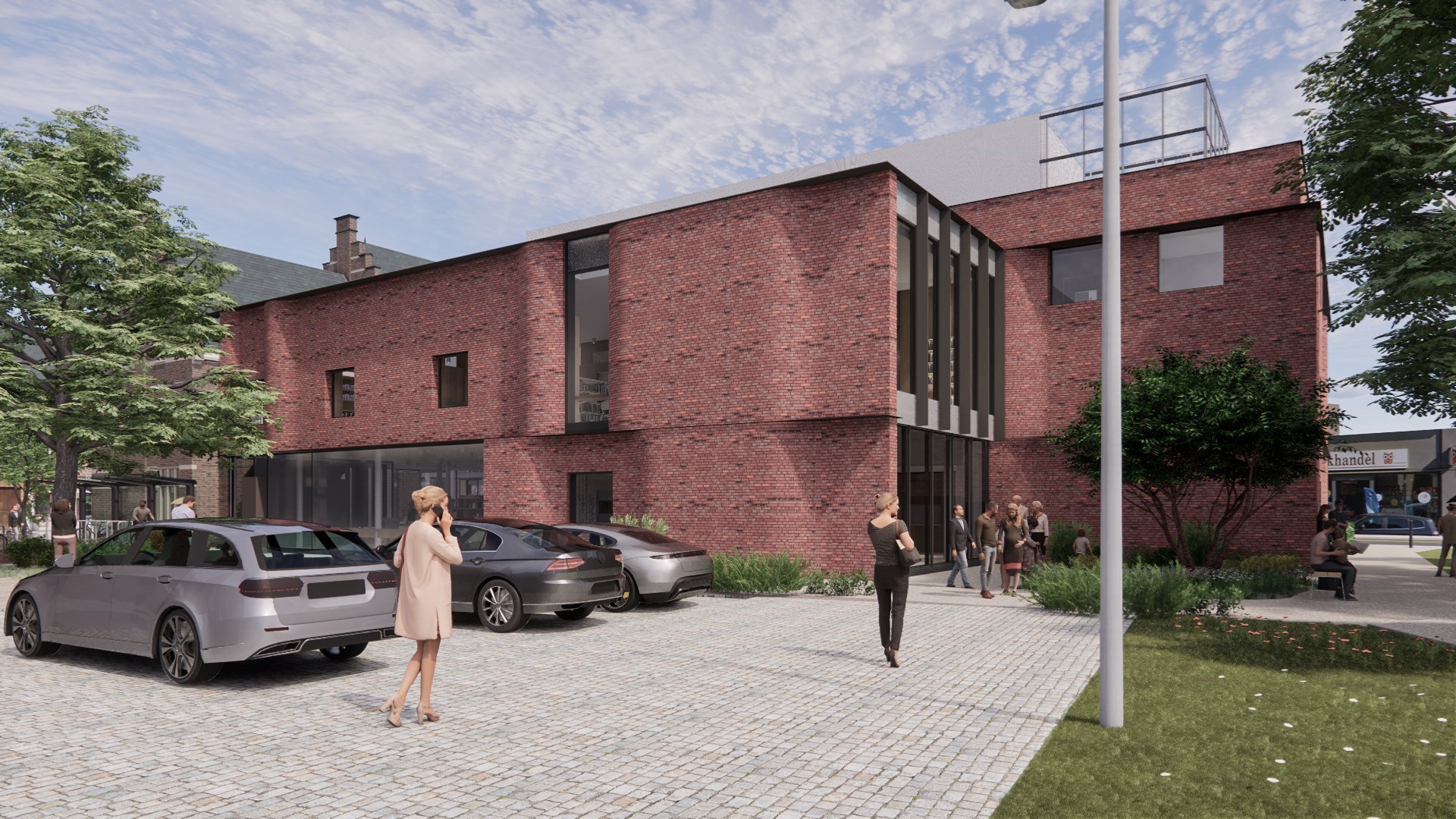 In zijn ontwerp voor de herbestemming besloot SCOOP Architecten het middelste van de drie aanpalende gebouwen die samen het gemeentehuis vormden – en op verschillende tijdstippen werden gebouwd – af te breken en te vervangen door een nieuw volume.
