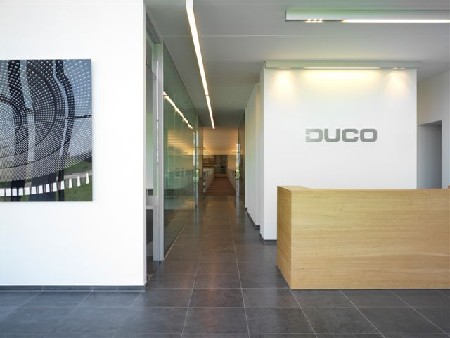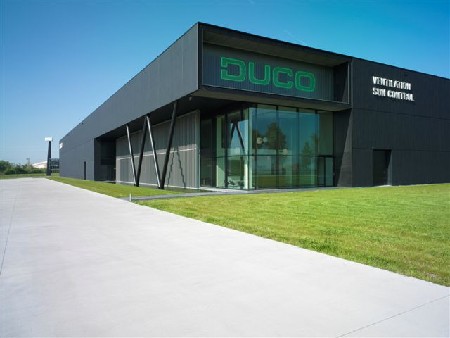 Duco past eigen groene technologie toe in haar nieuw gebouw voor een comfortabel en energiezuinig binnenklimaat en tracht op die manier via haar eigen bedrijfsgebouw ‘The green building solution’ naar buiten toe uit te dragen. Niet alleen ventilatie maar ook zonnewering en night-cooling dragen bij tot een verhoogd werkcomfort. Door de juiste combinatie van deze drie elementen wordt een perfect energiezuinige en comfortabele oplossing voor een gezond en aangenaam binnenklimaat gegarandeerd. Door de architecturale zonnewering te integreren wordt de energiebehoefte sterk beperkt. Hetzelfde geldt voor de night-cooling: de koele nachtlucht komt binnen via geluidsdempende Duco roosters en door vele betonoppervlaktes naakt te laten kan hierbij gebruik gemaakt worden van de thermische inertie. Verder wordt het dagventilatiesysteem aangestuurd door een CO2-sensor.