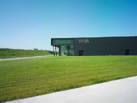 Langsheen de E40 ontwierp het architectenbureau Govaert & Vanhoutte een sterk staaltje ‘corporate branding’ voor het bedrijf Duco. Door de versmelting van een in het oog springend hedendaags ontwerp met de eigen technische installaties die het bedrijf ontwikkelt, werd dit nieuwe bedrijfsgebouw meteen ook het visitekaartje van de firma.