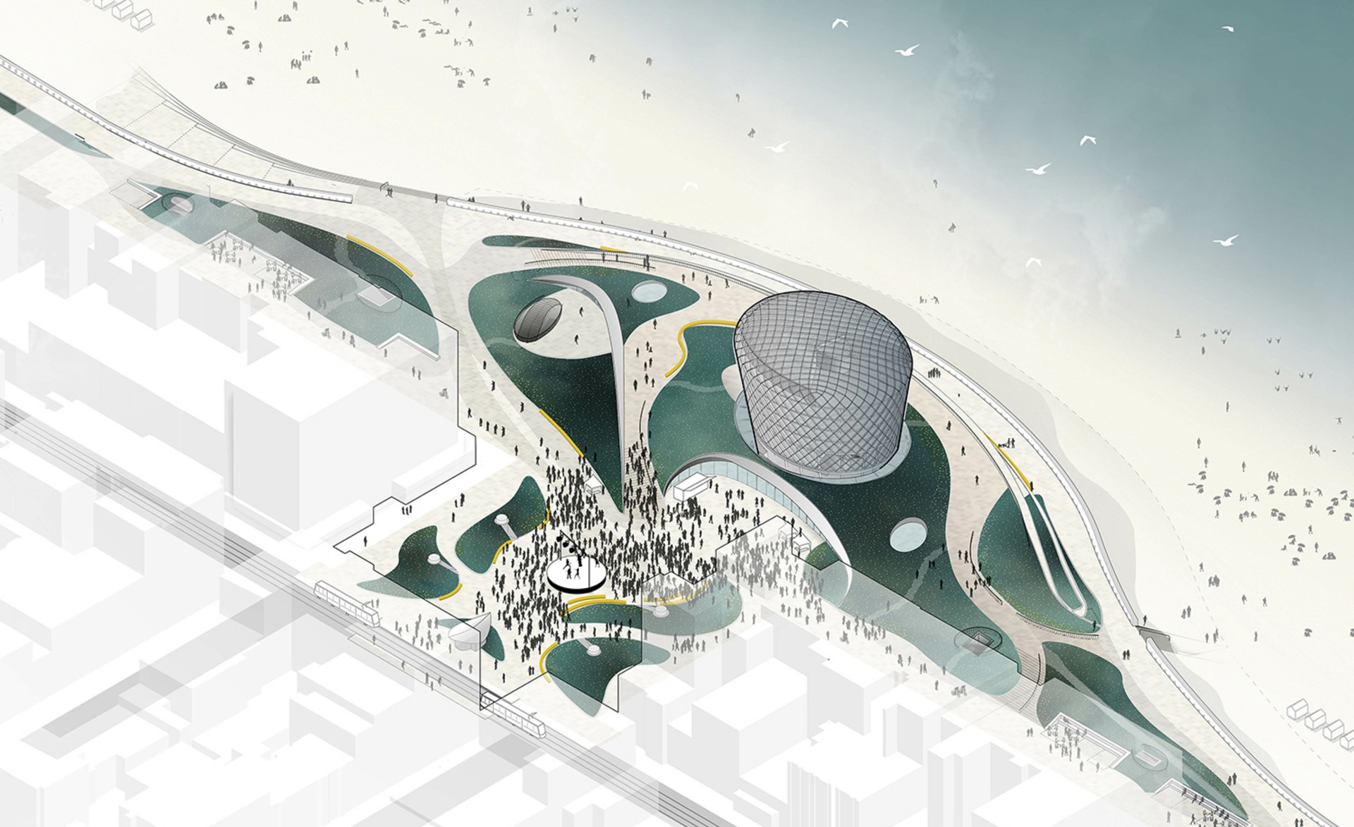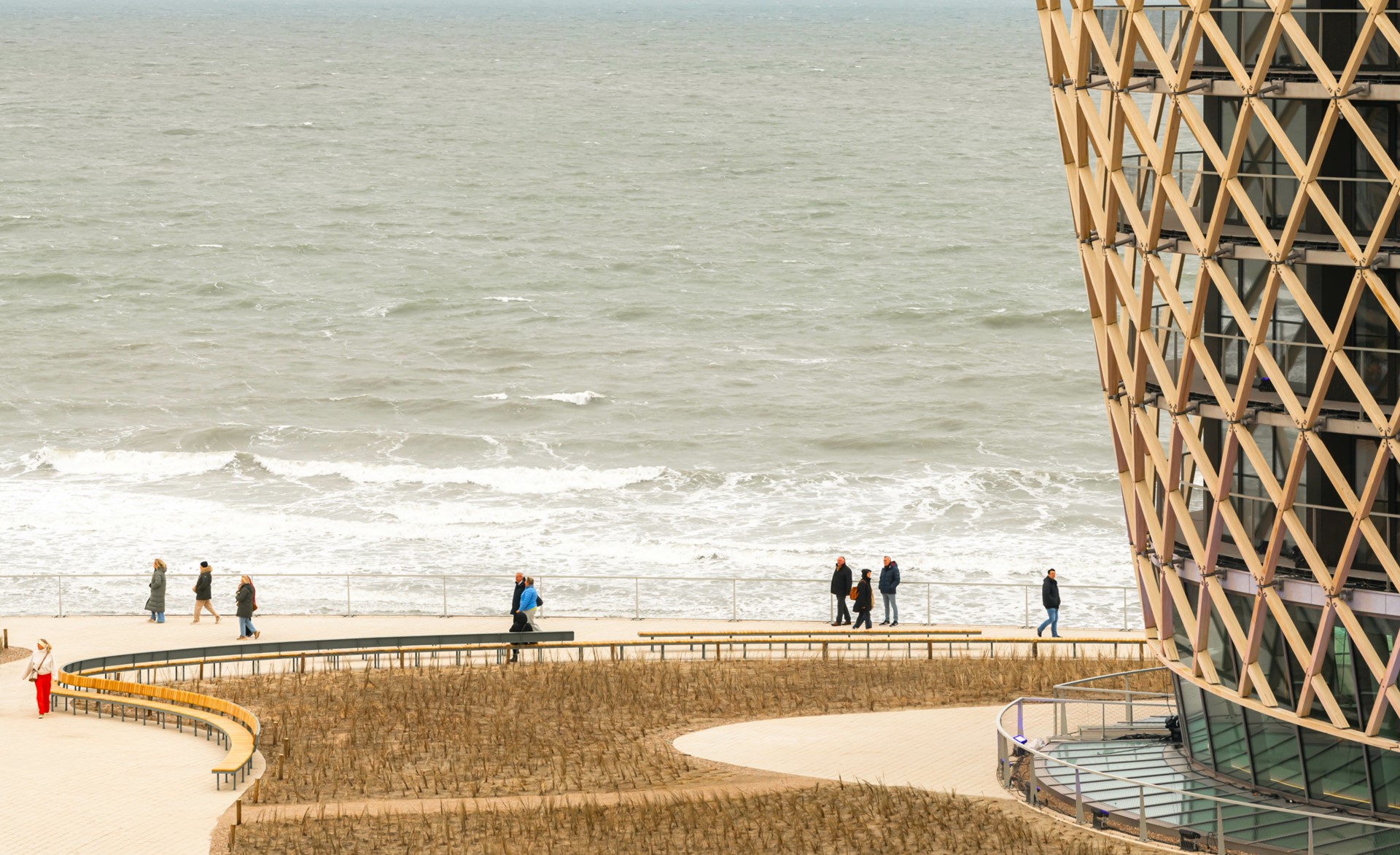 Zo maakt het project gebruik van het natuurlijke reliëf van de kustlijn om adembenemende uitzichten over de Noordzee en het omliggende landschap te bieden. Door het ontwerp van het gebouw, inclusief de positionering van de hoteltoren en uitkijkplatforms, kunnen bezoekers genieten van ononderbroken panoramische uitzichten die zich uitstrekken van Oostende tot aan Westende.