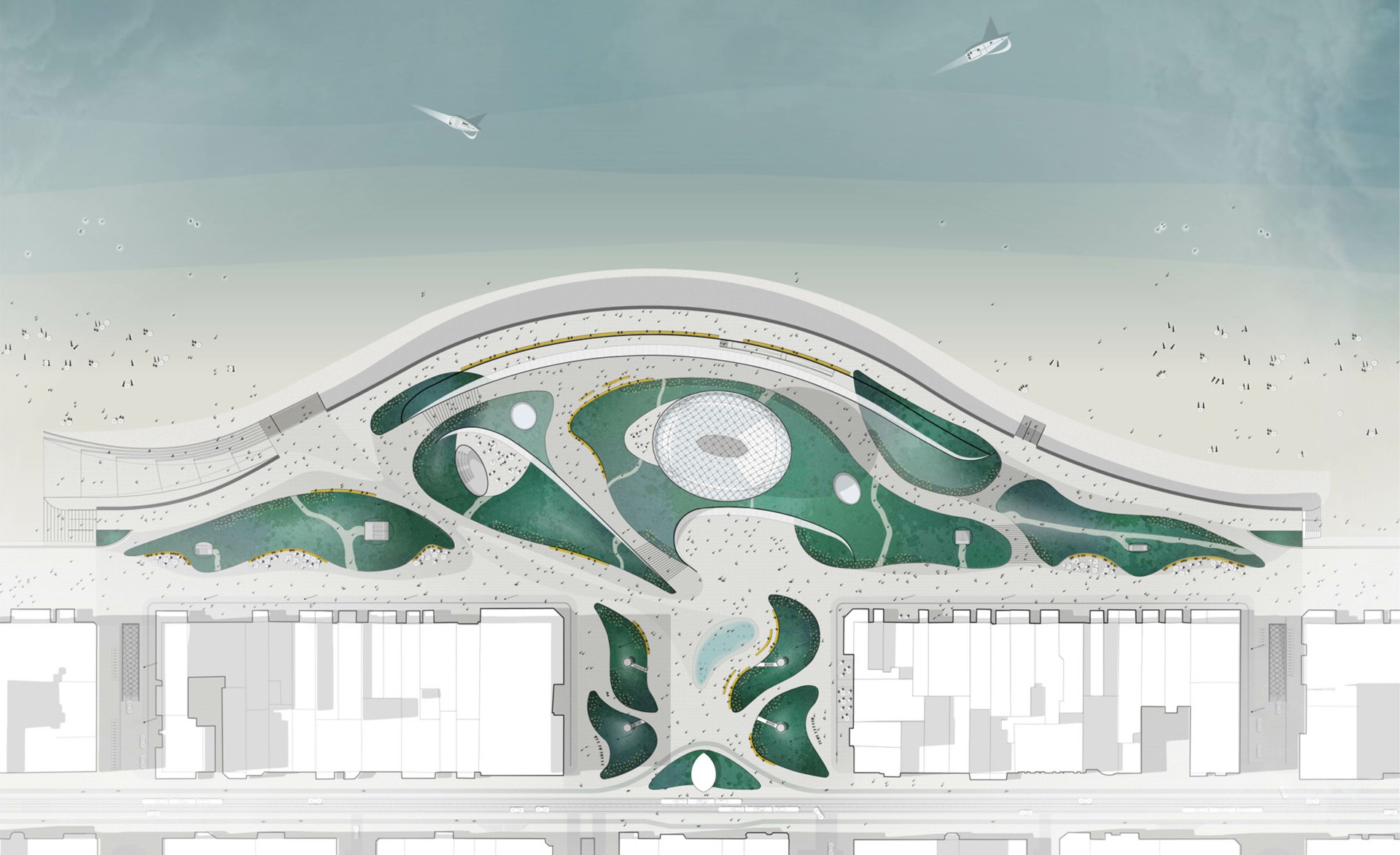 Maar bovenal is SILT ontworpen om harmonieus op te gaan in het bestaande landschap. Het project herdefinieert de skyline niet door te domineren, maar door een subtiele aanwezigheid die de natuurlijke en gebouwde omgeving met elkaar verbindt. “Skyscrapers bepalen de skyline van een moderne stad. Voor SILT hebben we gezocht naar een ‘landscraper’: een nieuw en uniek liggend duinlandschap met programma erin,” verduidelijkt Steven Delva. “En het zo typische landschap zetten we in als middel om alle gestelde opgaven op een ogenschijnlijk vanzelfsprekende wijze te integreren.”