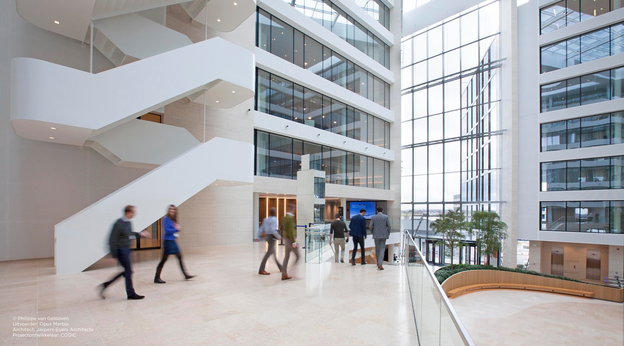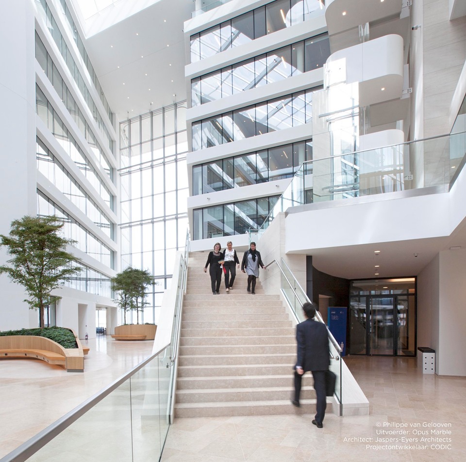 De prioriteit van CODIC: toparchitectuur, waarin uitsluitend met hoogstaande materialen gewerkt zou worden. Daarom is er gekozen voor een ruime atrium die het gebouw diagonaal doorsnijdt, en die van heel wat lichtinval en comfort kan genieten. De beige kalksteen Sinai Pearl van Beltrami, die gebruikt werd om de vloeren en trappen te bekleden, biedt extra uitstraling aan het interieur. Deze Egyptische kalksteen werd toegepast in verzoete en sabbiatino afwerking. Opus Marble uit Nijvel zorgde voor de plaatsing.