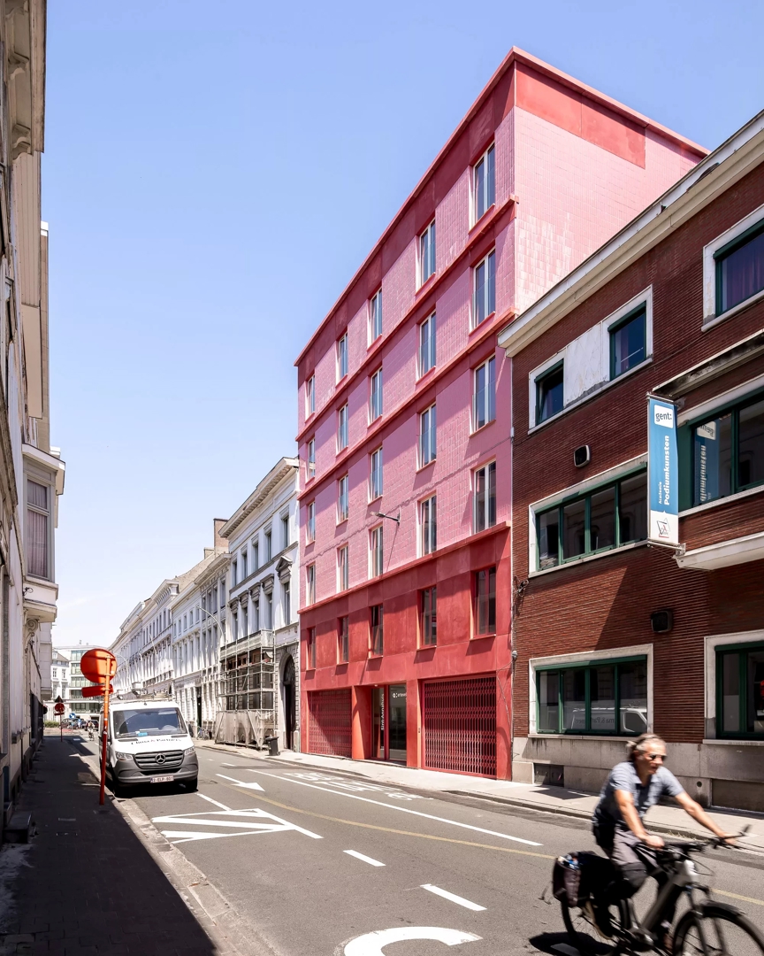 De nieuwe bouwmassa langs de Nieuwebosstraat verlengt en verfijnt het bestaande straatprofiel dat begint aan het Sint-Annaplein en doorloopt tot aan de school op de hoek. In deze uitgesproken stedelijke context schenkt luum bijzondere aandacht aan de inpassing in het straatbeeld. De gevel zoekt bewust een evenwicht tussen aansluiting en eigenheid: de ritmiek en materialisatie refereren subtiel aan de omgeving, terwijl de opvallende donkerroze tint het gebouw een hedendaagse, zelfverzekerde aanwezigheid geeft die breekt én verbindt.