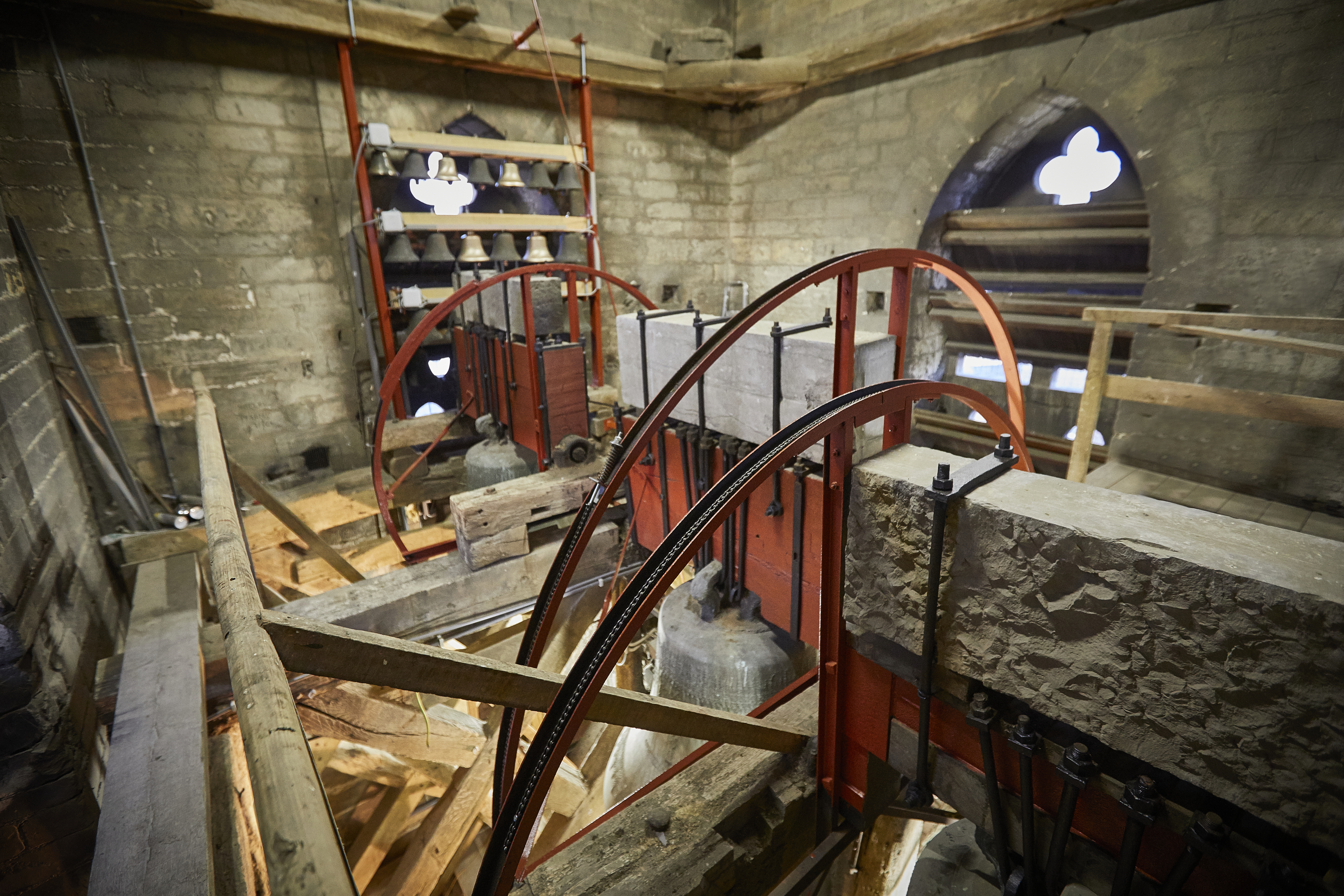 Tijdens de zeer precieze en minutieuze renovatie werden maar liefst 50 m² muurschilderingen blootgelegd en bijna 1.000 m² schilderingen opnieuw aangebracht. Het volledige interieur, inclusief biechtstoel en uurwerk, werd aangepakt en ook alle technieken werden vernieuwd. “Een vooronderzoek in de Sint-Odulphuskerk had al aan het licht gebracht dat er onder 90 procent van de witgeschilderde muren prachtige patronen, kleuren en heiligen verborgen zaten”, legt Ellen Baeten, projectleider van Renotec, uit in het magazine Bouwen aan Vlaanderen. “We hebben het verder onderzocht en al die schilderingen opnieuw zichtbaar gemaakt, door laagjes verf weg te halen en taferelen opnieuw aan te brengen. Het was een monnikenwerk en een schattenjacht tegelijk.” De kerk werd eveneens voorzien van toiletten en een keuken. Alle technieken worden voortaan bediend via touchscreens.