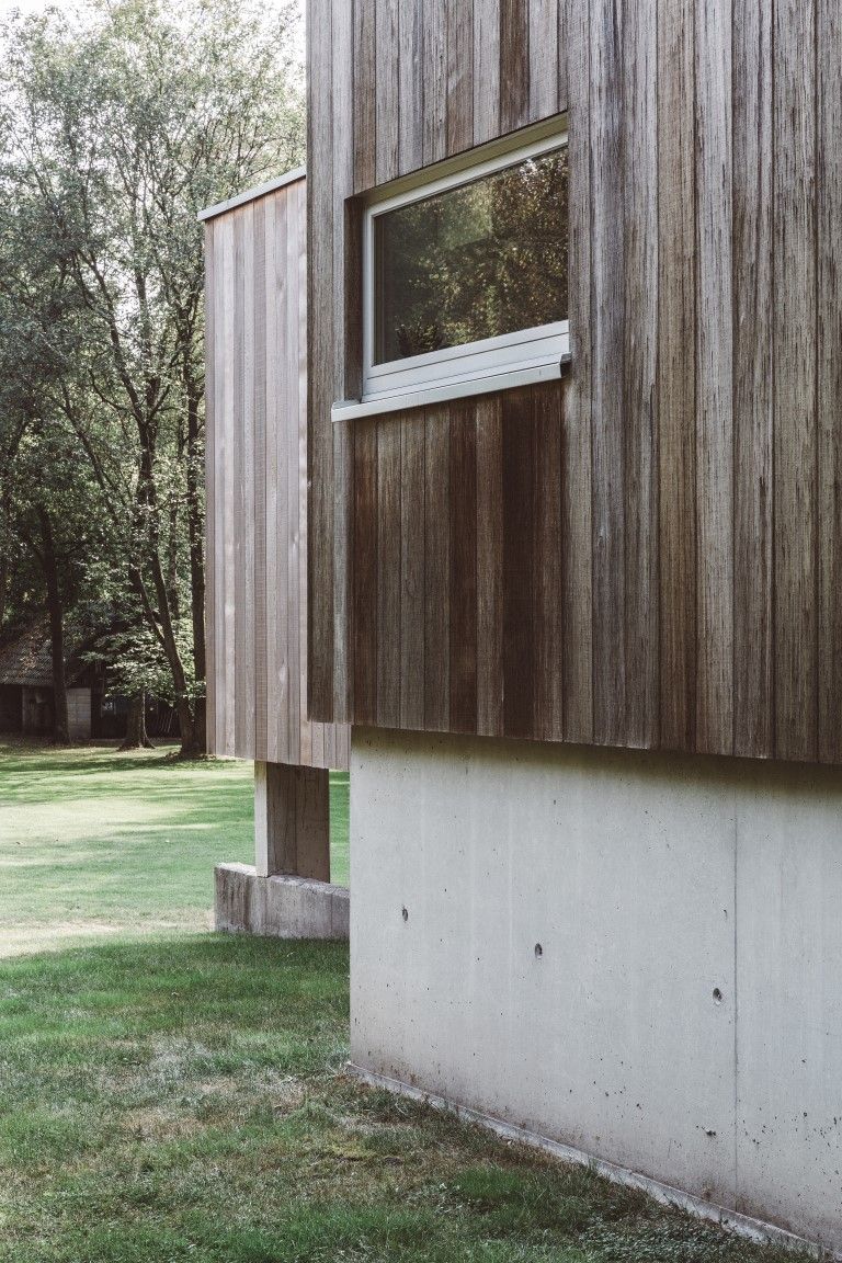 Op de recente uitbreiding na dateert de woning al van het eind van de vorige eeuw. En toch trekt ze nog altijd de aandacht. Dat merken we aangezien we aan het einde van een doodlopende straat wonen. Nieuwsgierigaards maken zich eigenlijk meteen kenbaar. De woning heeft blijkbaar nog altijd iets exemplarisch. Hoe dat komt? Wellicht door de soberheid in de vormentaal, met rechthoekige volumes. De woning is eigenzinnig maar niet overdadig. Ze bevat geen tijdsgebonden elementen of materialen. Hout en beton zijn van alle tijden. Binnen zijn de sterktes de aandacht voor detail en de open indeling met een minimum aan dragende wanden. De open ruimtes kunnen opnieuw worden ingedeeld zonder verregaande ingrepen.