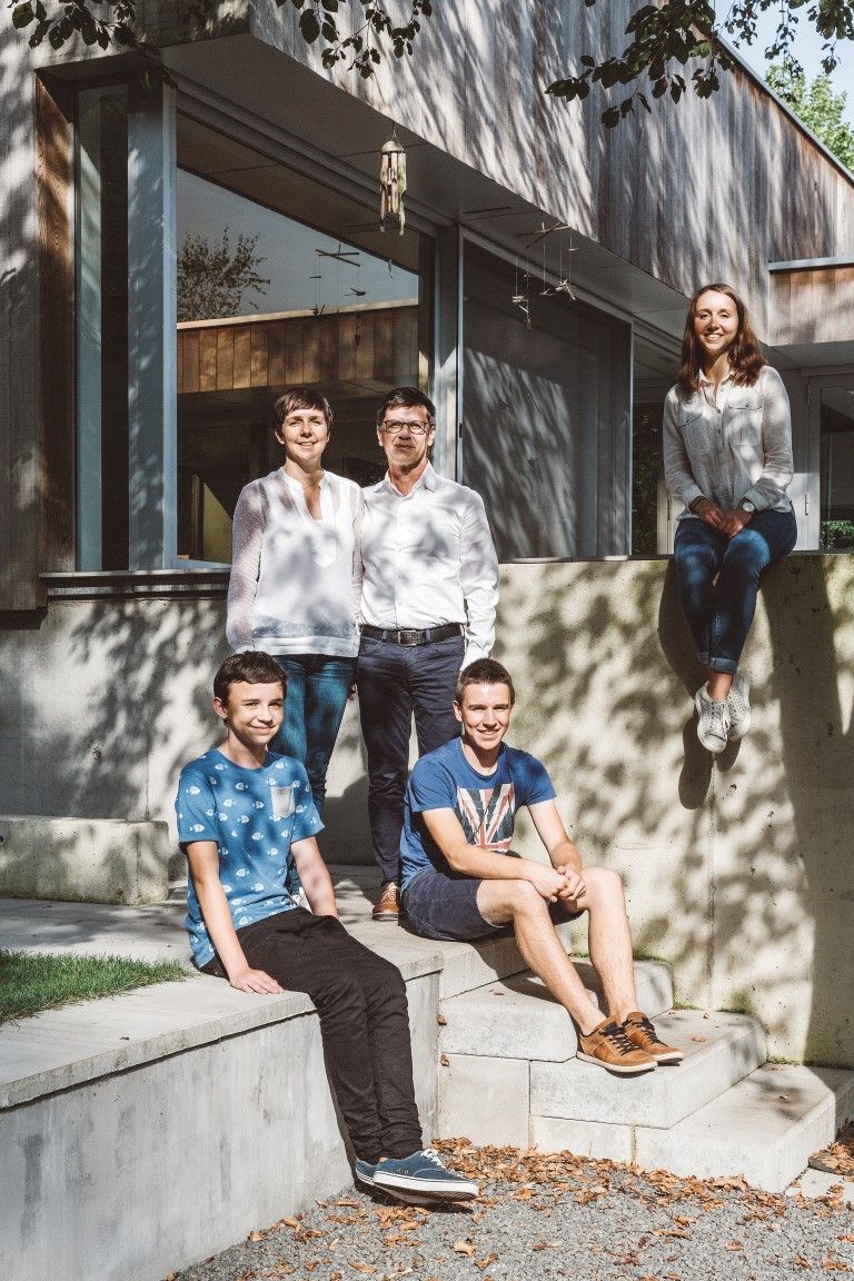 Wonen is voor ons thuiskomen in een omgeving waar we rust vinden. Het is afstand kunnen nemen van de buitenwereld en tot onszelf komen. Omdat we met zijn vijven zijn – twee ouders en drie tieners – moesten we zoeken naar een evenwicht tussen ruimtes waar we elkaar ontmoeten en ruimtes die eerder privé zijn. Die ruimtes moeten we probleemloos kunnen aanpassen aan onze behoeftes.
