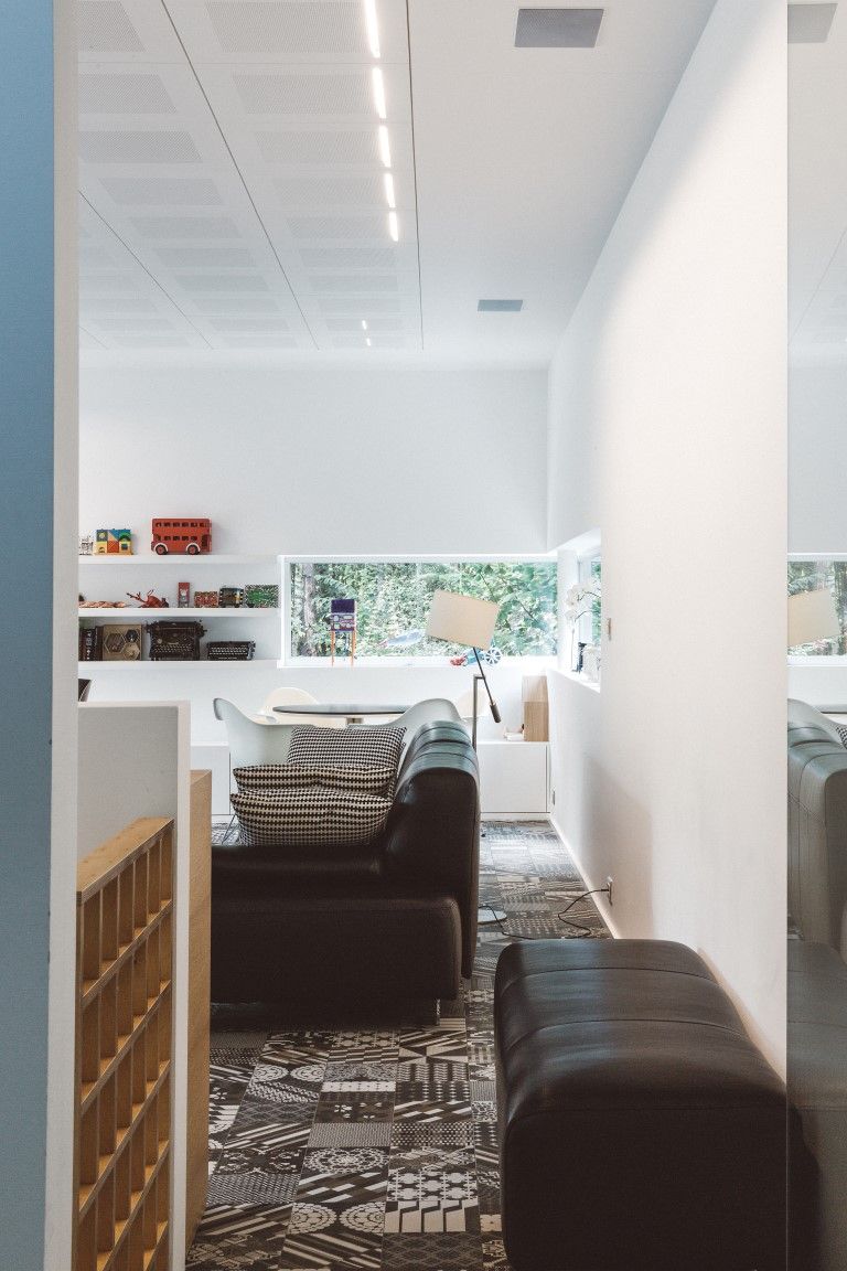 "Omdat we met zijn vijven zijn – twee ouders en drie tieners – moesten we zoeken naar een evenwicht tussen ruimtes waar we elkaar ontmoeten en ruimtes die eerder privé zijn."